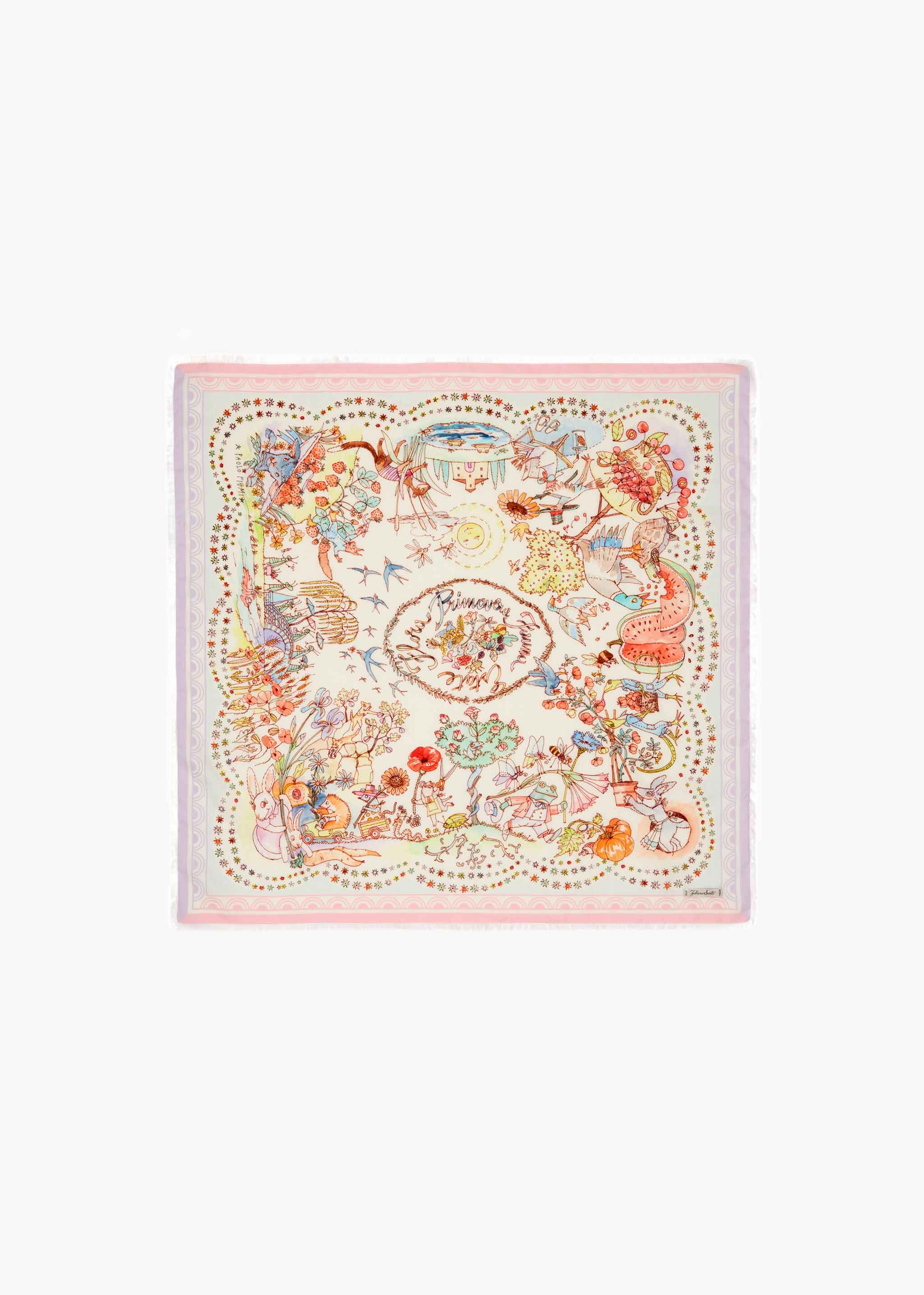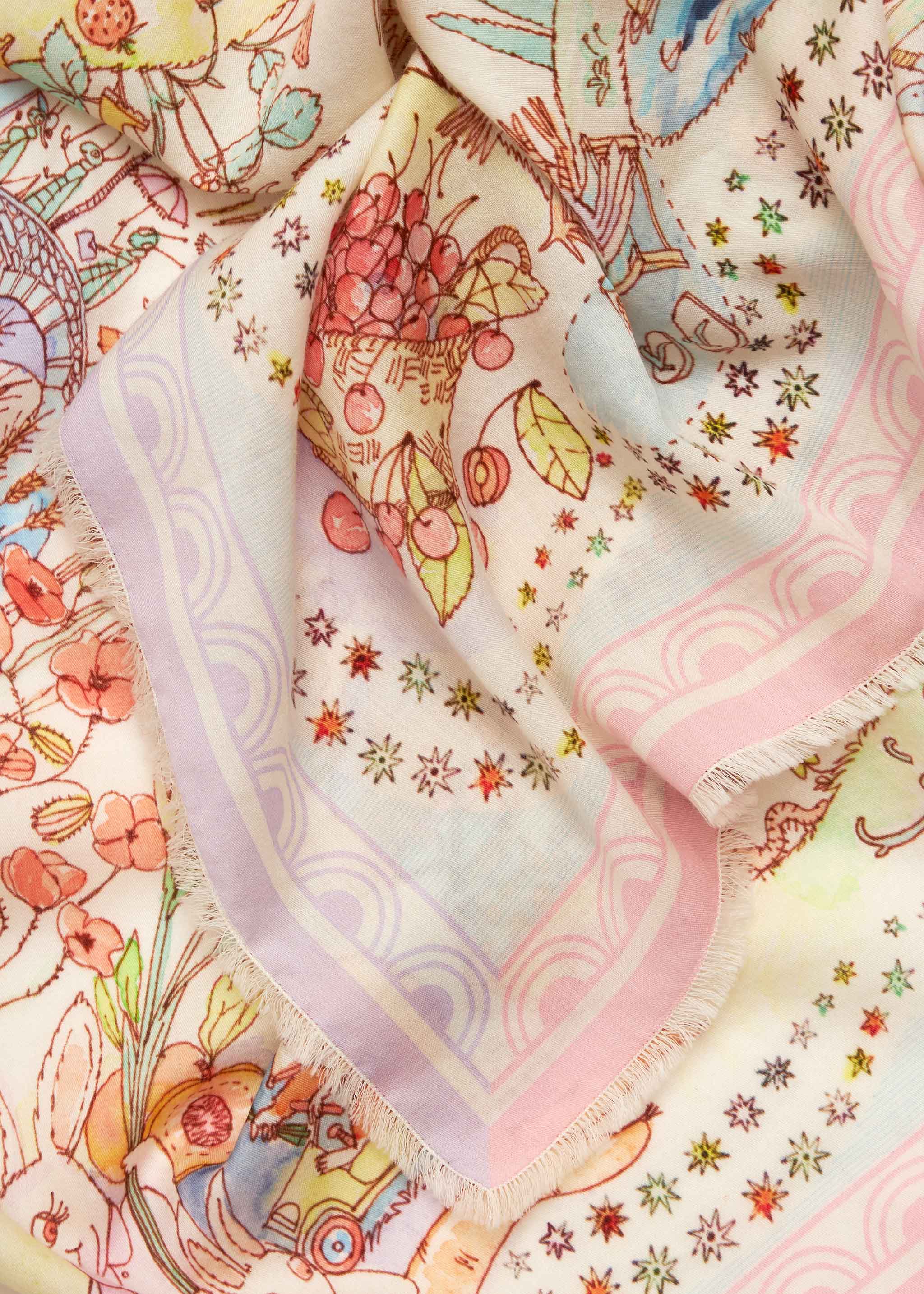 Halstuch 'New Little Spring' von Faliero Sarti aus feiner Baumwolle mit märchenhaftem Design und Fransen.