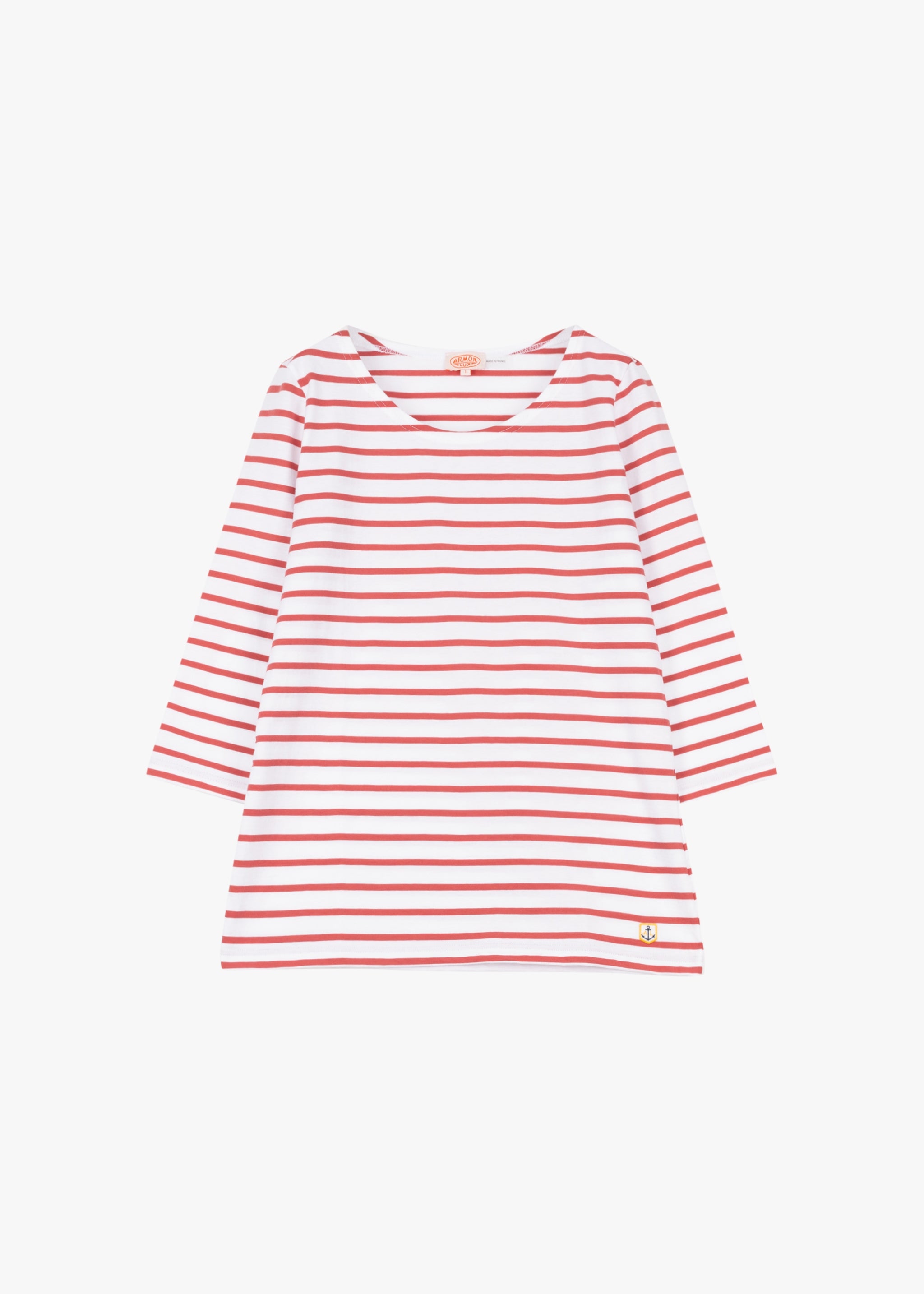 Streifen-Shirt von Armor Lux aus weicher Baumwolle, U-Boot Ausschnitt, 3/4 Ärmel, kleines Logo-Patch, gerader Saum.