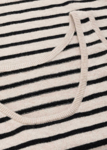 Cashmere top by Lisa Yang featuring black and beige stripes, round neck, sleeveless, slim fit.
