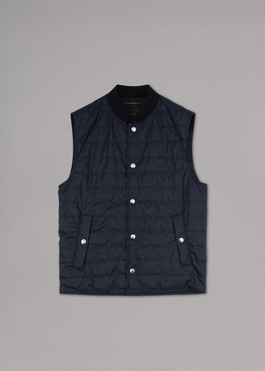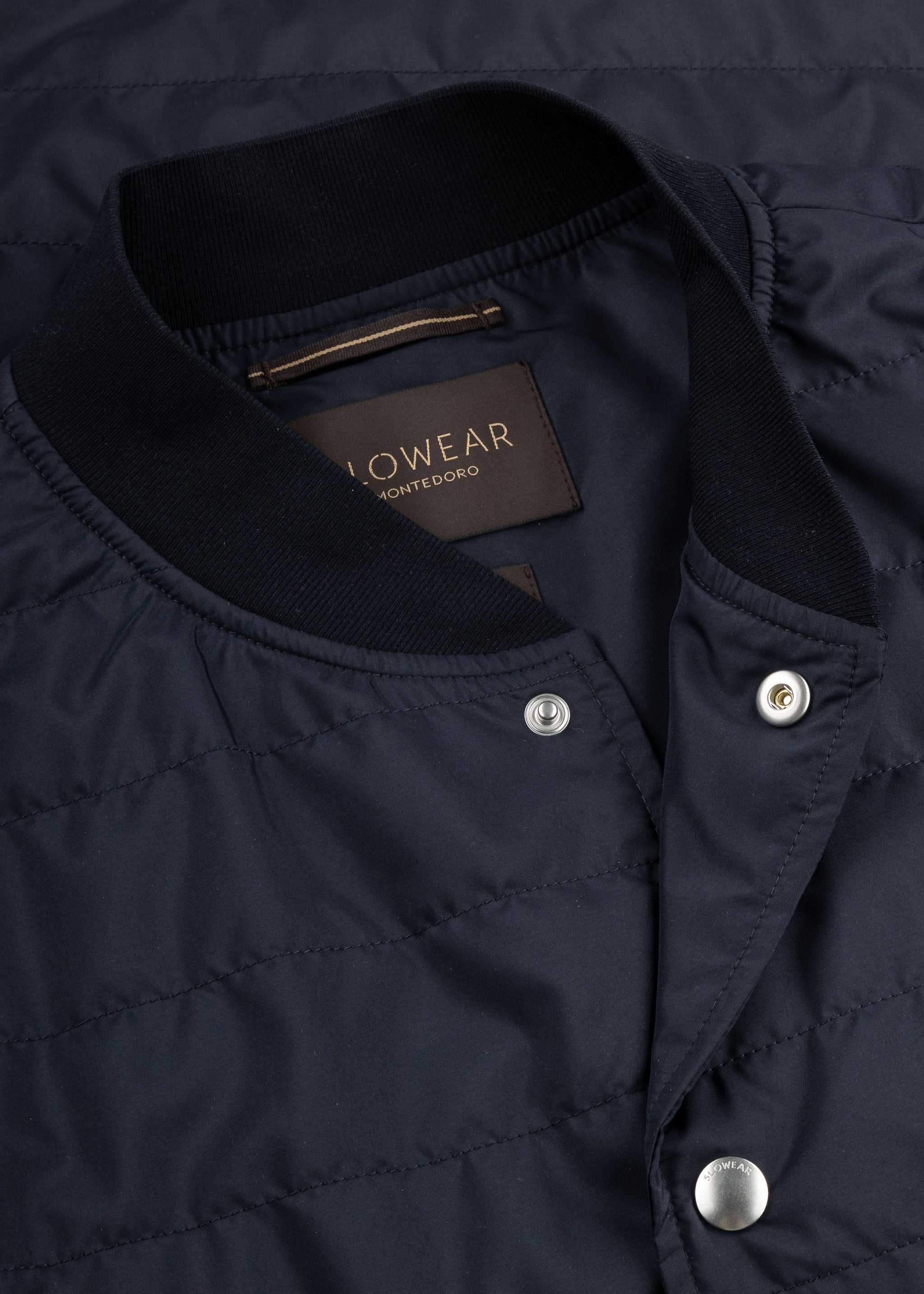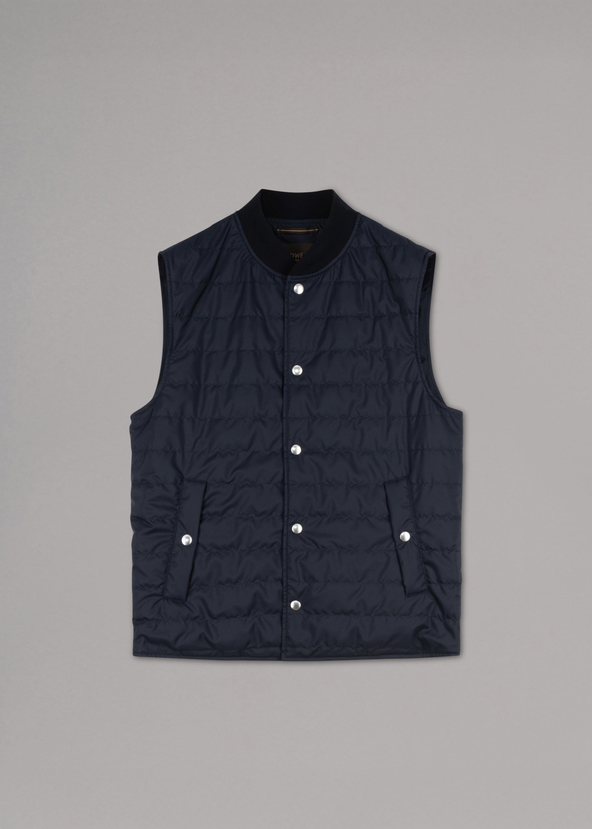 Quilted vest by Montedoro, round neck, snap button closure, side pockets, one inside pocket, smooth inside, quilted outside, straight hem, lined, water-repellent.