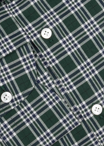 Fine 'Shiller' shirt by 100 Hands made of soft cotton with 'Prince of Wales check', cutaway collar, full-length mother-of-pearl button placket, sleeves with button cuffs, darts in the back, rounded hem.
