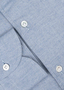 Classic 'Shiller' shirt by 100 Hands made of soft flannel, featuring a cutaway collar, full-length mother-of-pearl button placket, button-cuff sleeves, back darts, and a rounded hem.