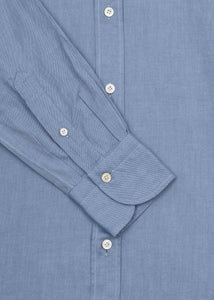 Light-blue shirt from Finamore made of a very light flannel fabric, classic collar, button placket with light mother-of-pearl buttons, long sleeves with two buttons each and rounded hem.