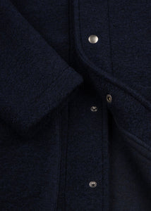 Hartford 'Coach' jacket made of washed fleece with a brushed interior , classic collar, long sleeves, snap fasteners, two patch pockets, one inside pocket, unlined, straight hem.