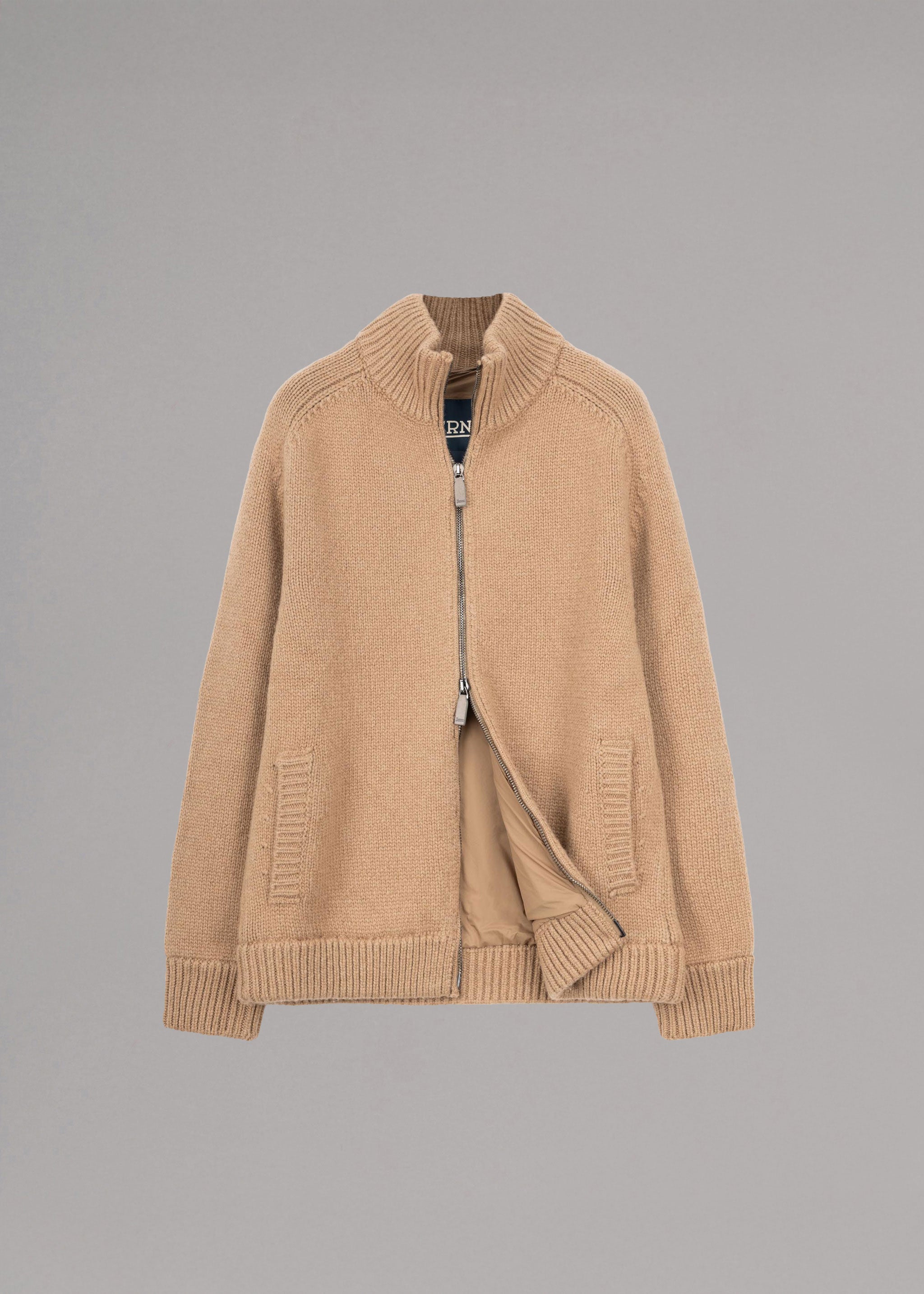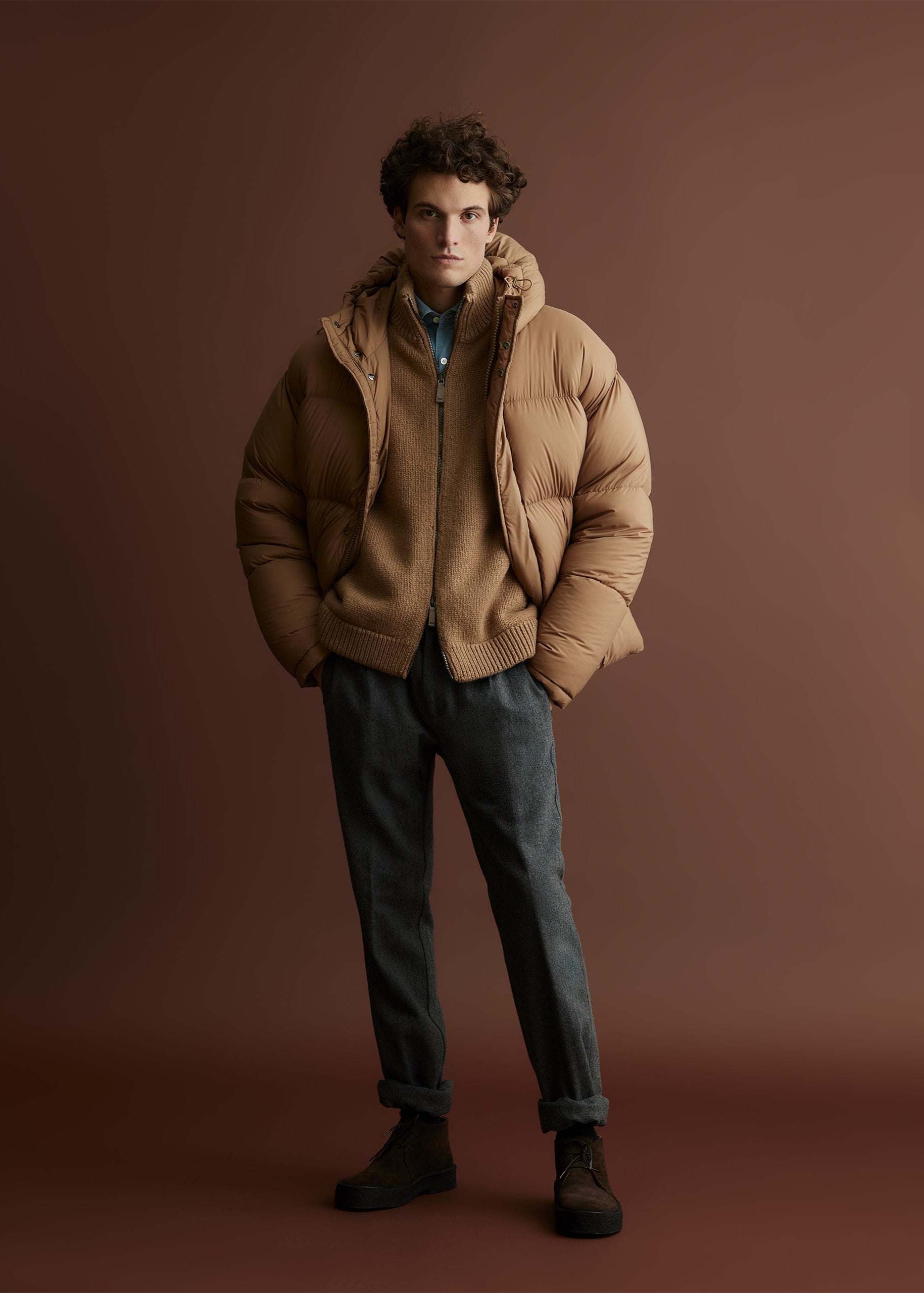 Quilted down jacket by Herno, hood, full-length button placket with two-way zip, side pockets, two inside pockets, lined, straight hem.