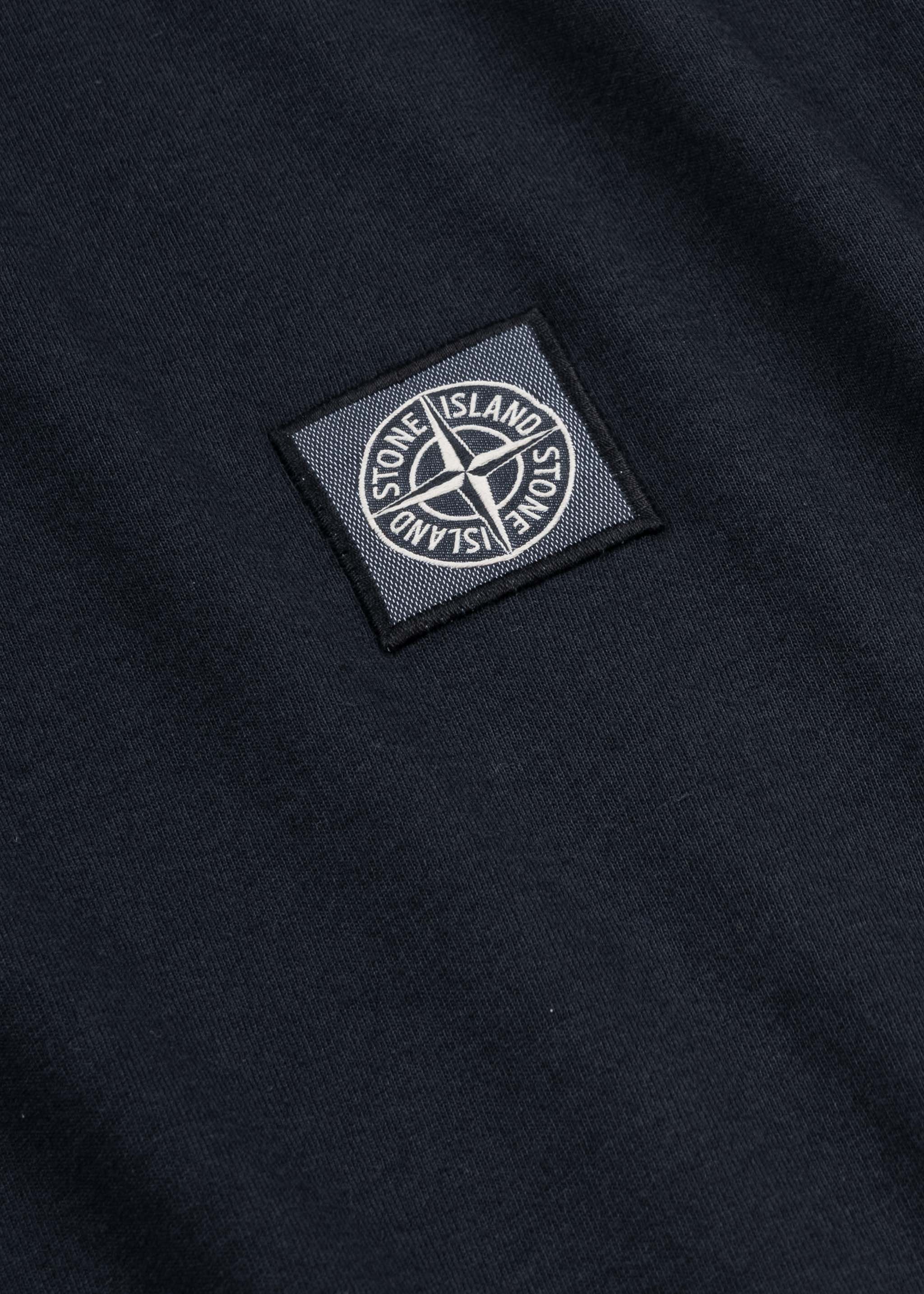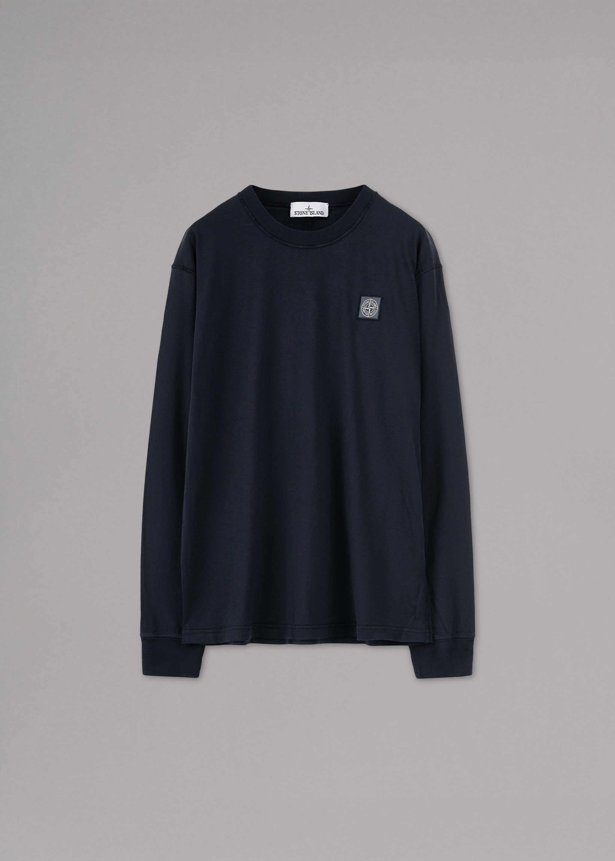 Long-sleeved shirt by Stone Island made of organic cotton, ribbed crew neck, semi-circular back yoke, Compass logo patch, overlock seams, straight hem.