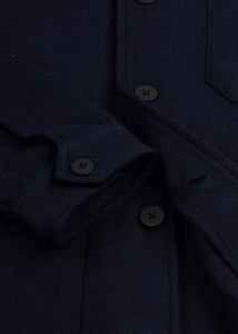 KnowledgeCotton structured shirt jacket made of soft merino wool, featuring a classic collar, button placket, long sleeves with button cuffs, three patch pockets, partially lined, and a straight hem.