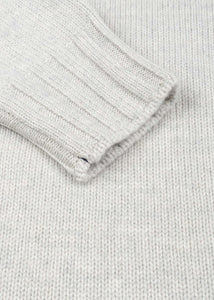 Light-grey knit sweater by Artisans Lamano made of fine cashmere with stand-up collar.