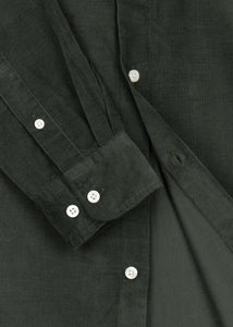Shirt by KnowledgeCotton made of soft fine corduroy, classic collar, long sleeves with button cuffs, full button placket, back yoke with pinch pleat, one breast pocket, rounded hem.