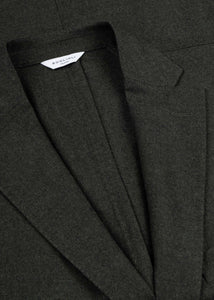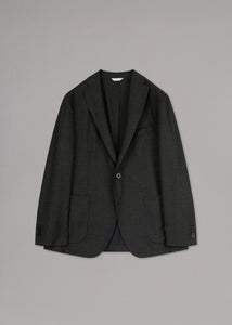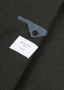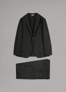 Single-breasted suit by Boglioli in fine virgin wool, notched lapels, long sleeves with button cuffs, one breast pocket, two patch pockets, two inside pockets, partially lined, and a straight hem with vents.