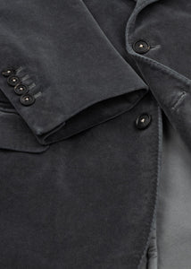 Single-breasted 'Sloop' suit by Massimo Alba in soft cotton velvet, notched lapels, long sleeves with button cuffs, three-button closure, one breast pocket, three flap pockets, two inside pockets, partially lined, straight hem with vents.