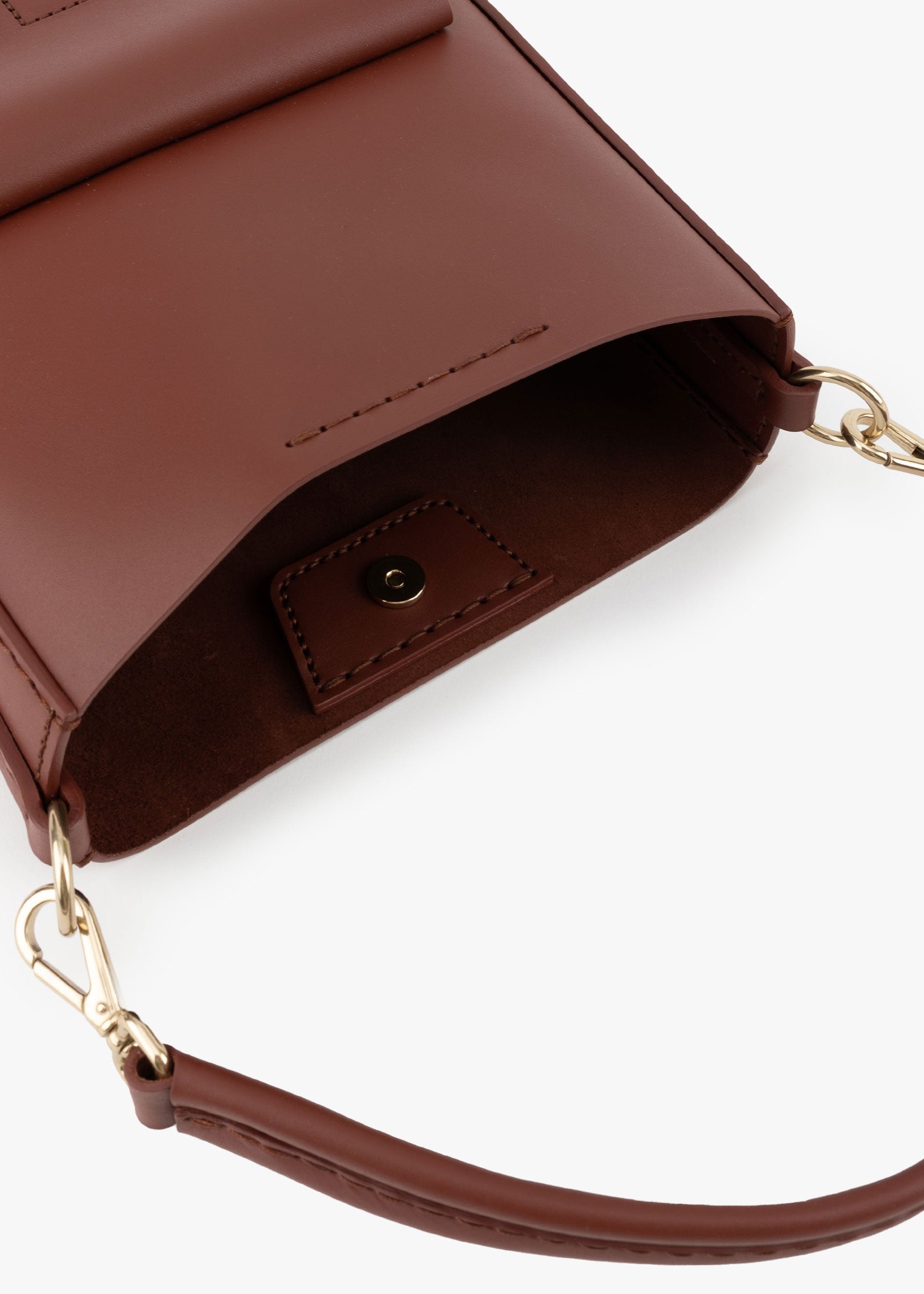 Timeless handbag 'Caddy' by Stiebich + Rieth made of soft calf leather, with magnetic clasp, one outer compartment with magnetic clasp, one inner compartment, brass fittings and short hand-sewn handle + long shoulder strap with carabiners.