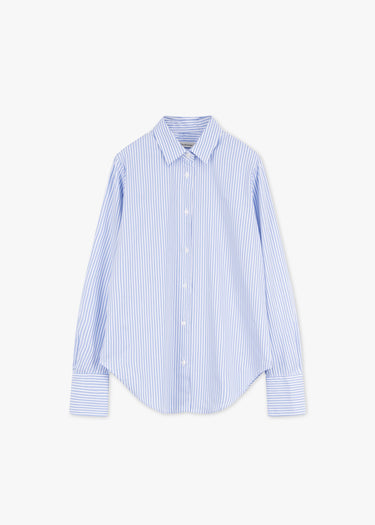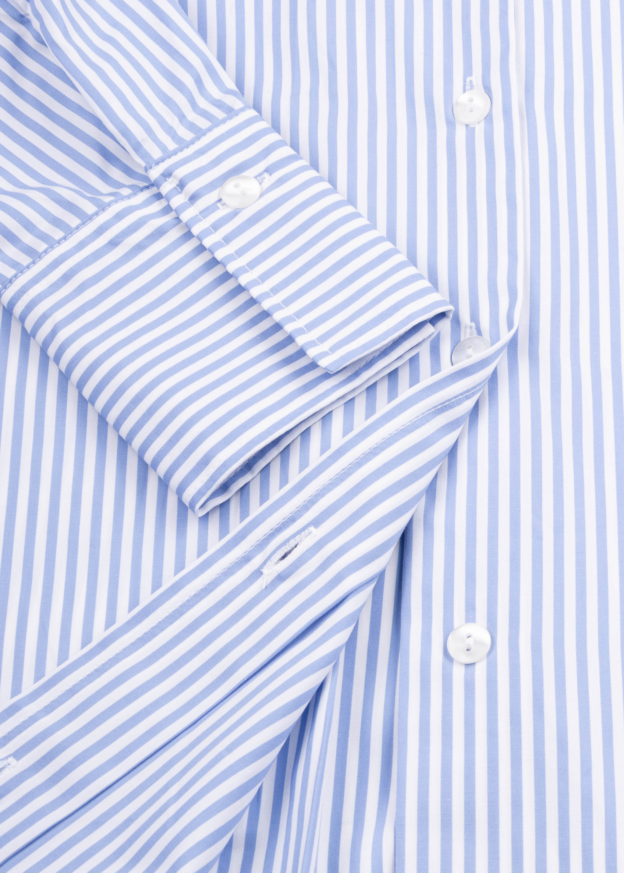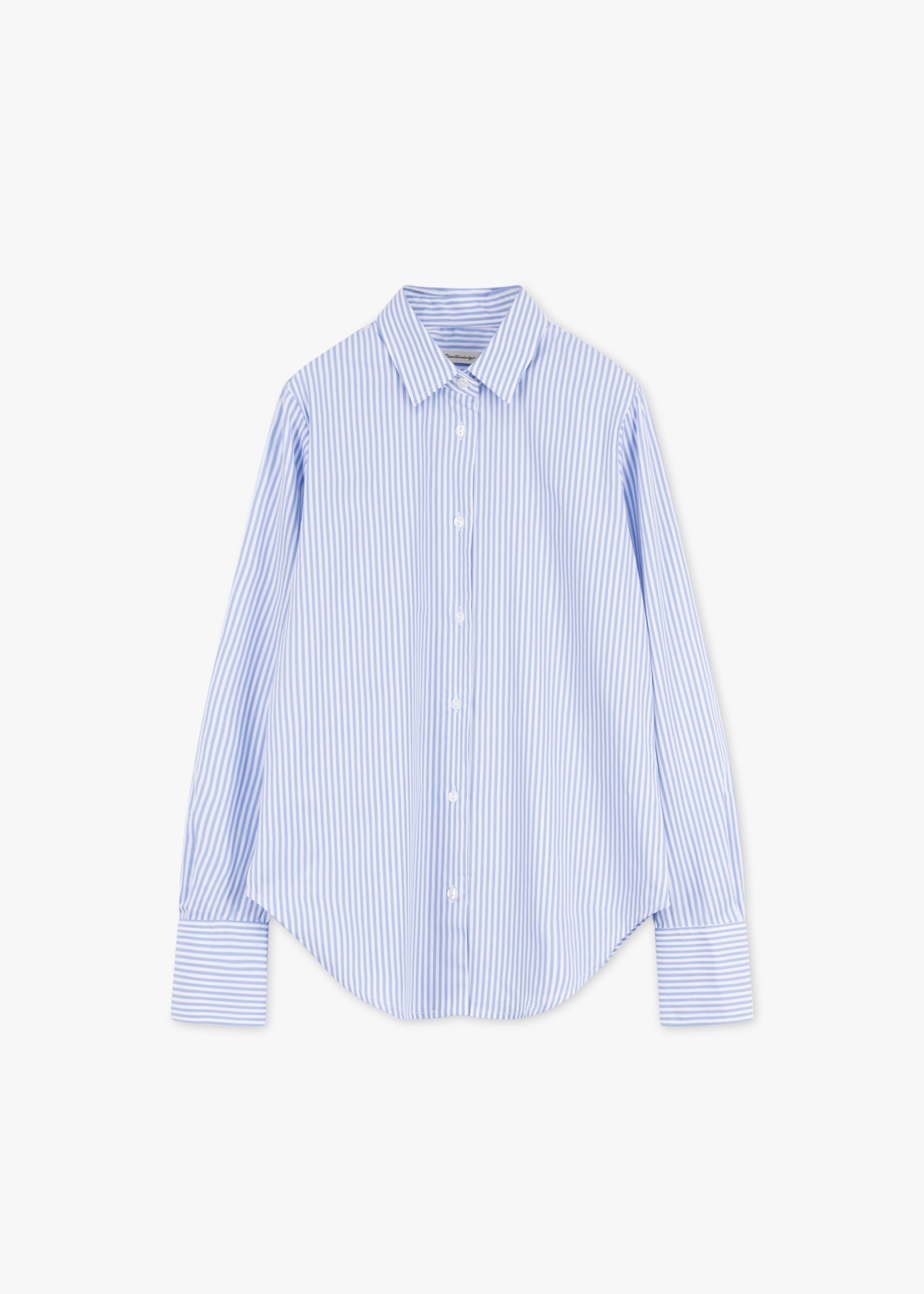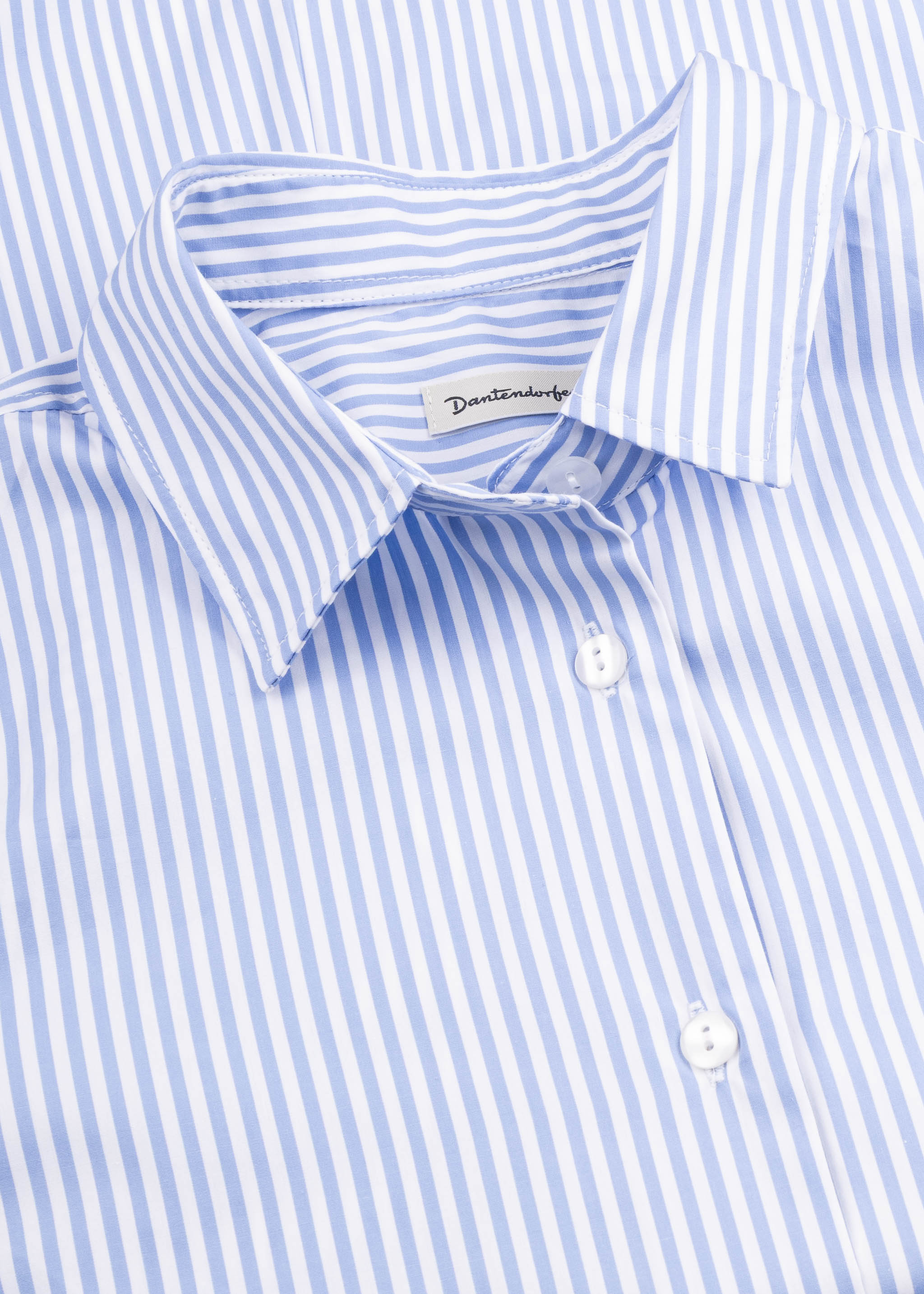 Blouse by Dantendorfer made of fine cotton, classic collar, long sleeves with wide button cuffs, full-length button placket, back yoke with box pleat, rounded hem.
