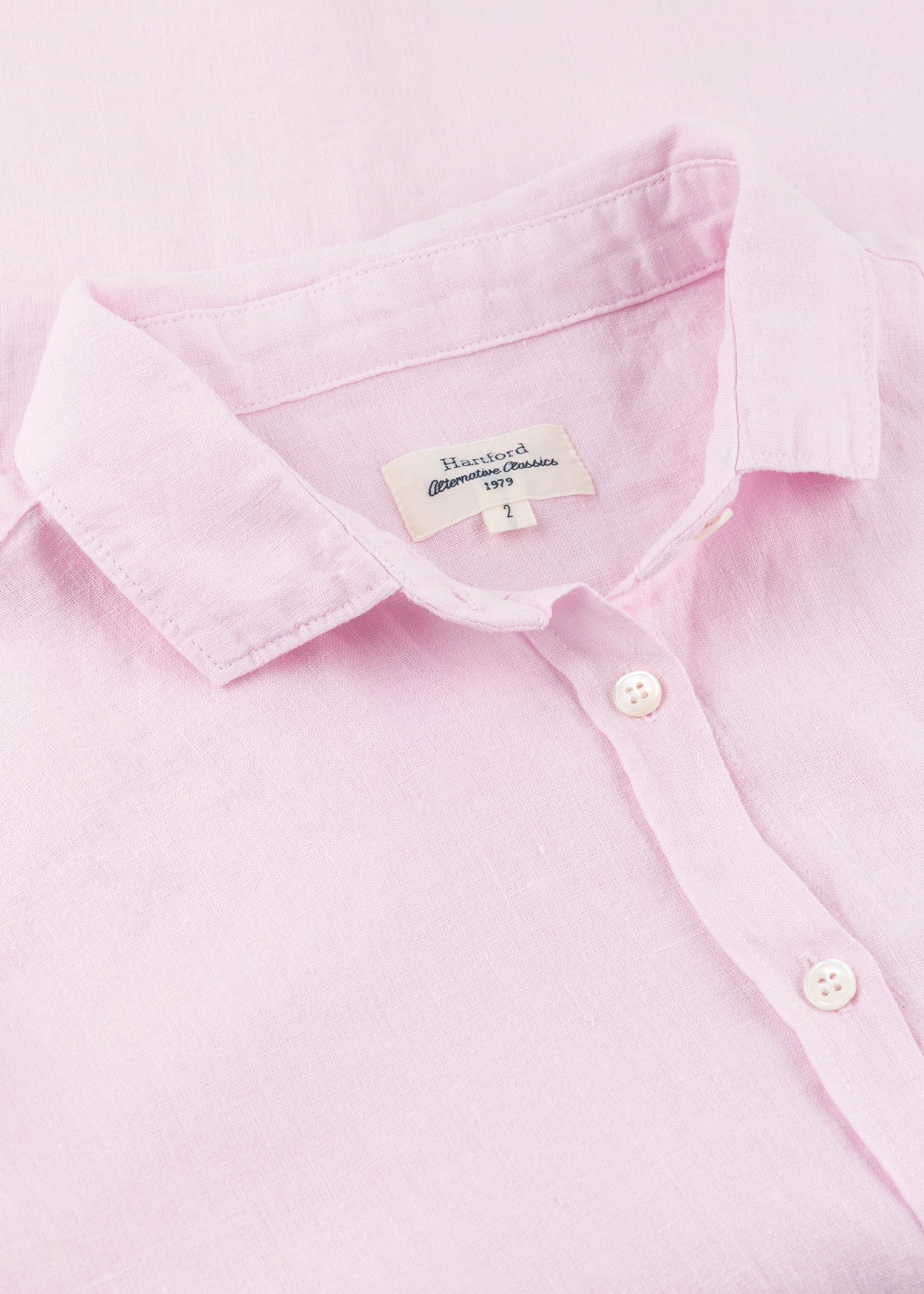 Blouse 'Corazon' by Hartford, classic collar, back yoke with box pleat, full button placket, long sleeves with buttoned cuffs, rounded hem.