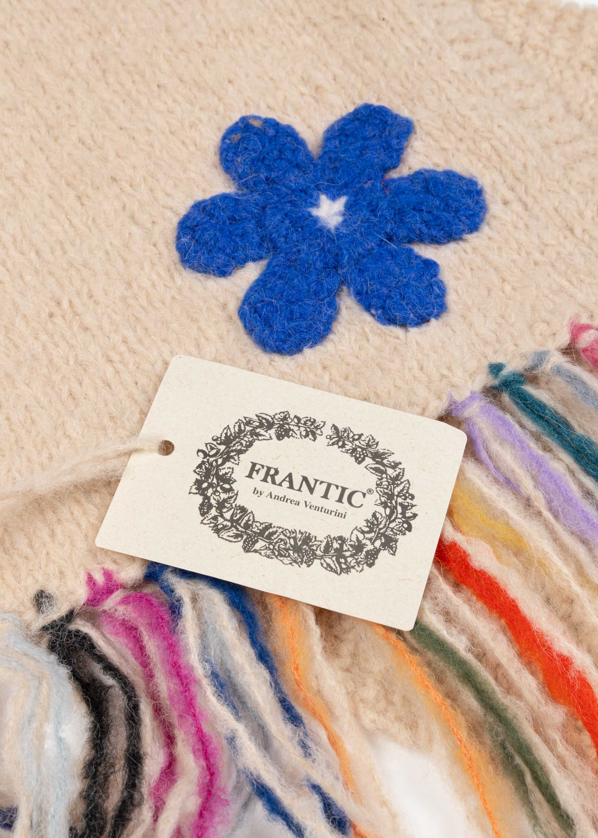 Exclusive cardigan 'Mariasol' by Frantic made of extra soft alpaca blend, round neck, wide sleeves, hand-knitted with incorporated floral motifs, straight hem, without closure.