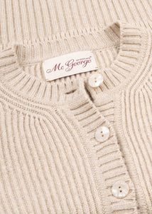 McGeorge ribbed knit cardigan in a soft wool and cashmere blend, featuring a round neck, button placket, long sleeves, and a straight hem.