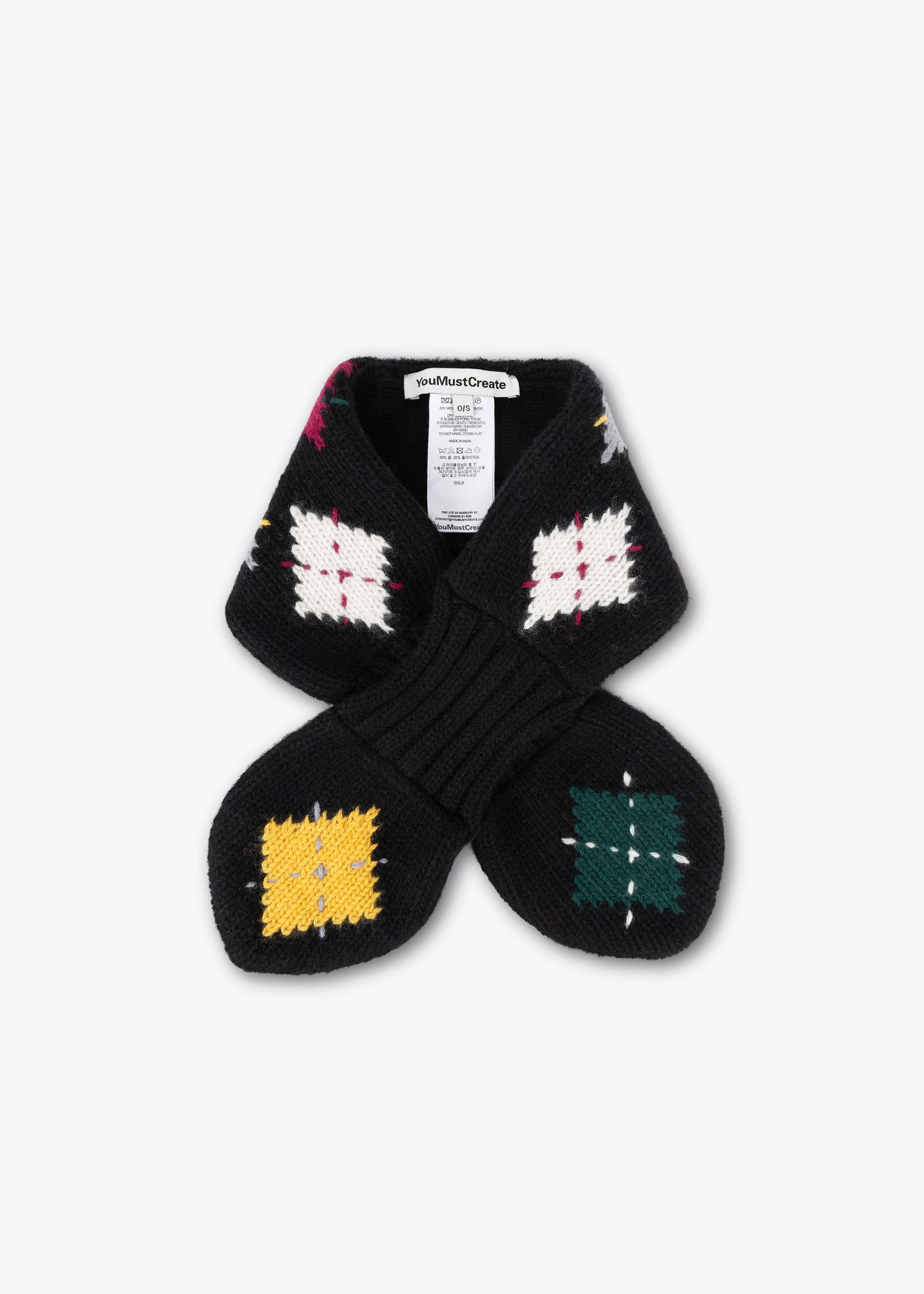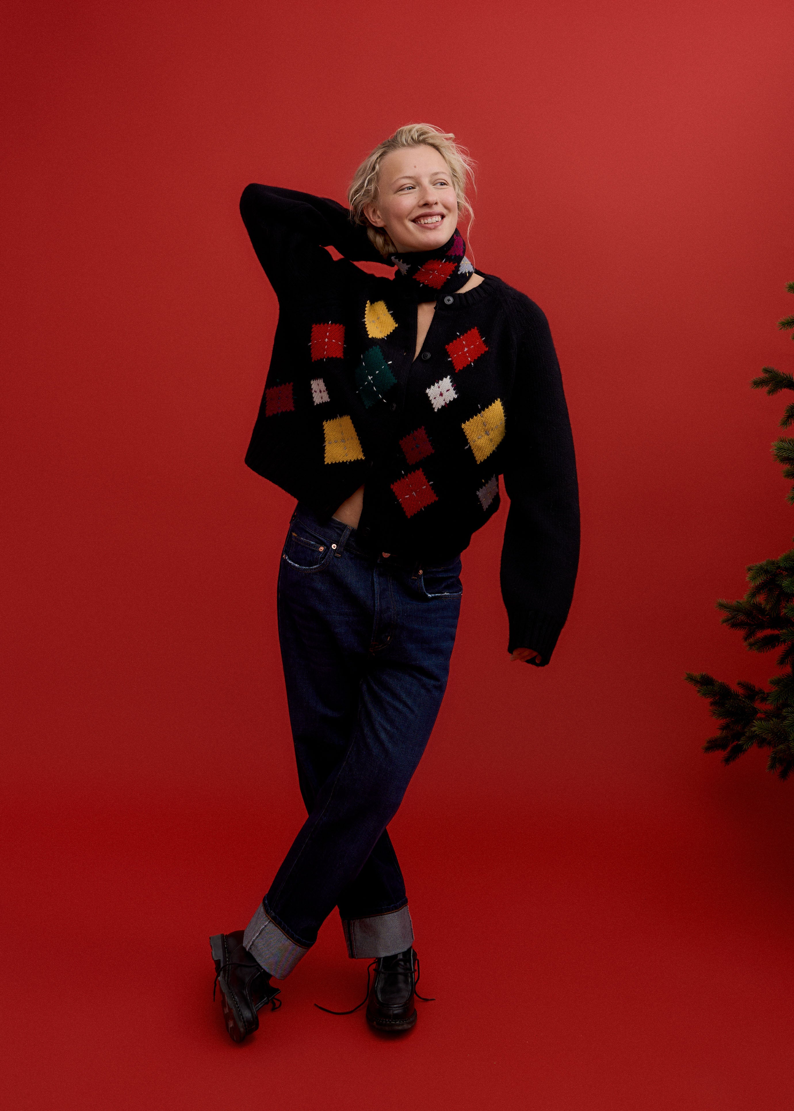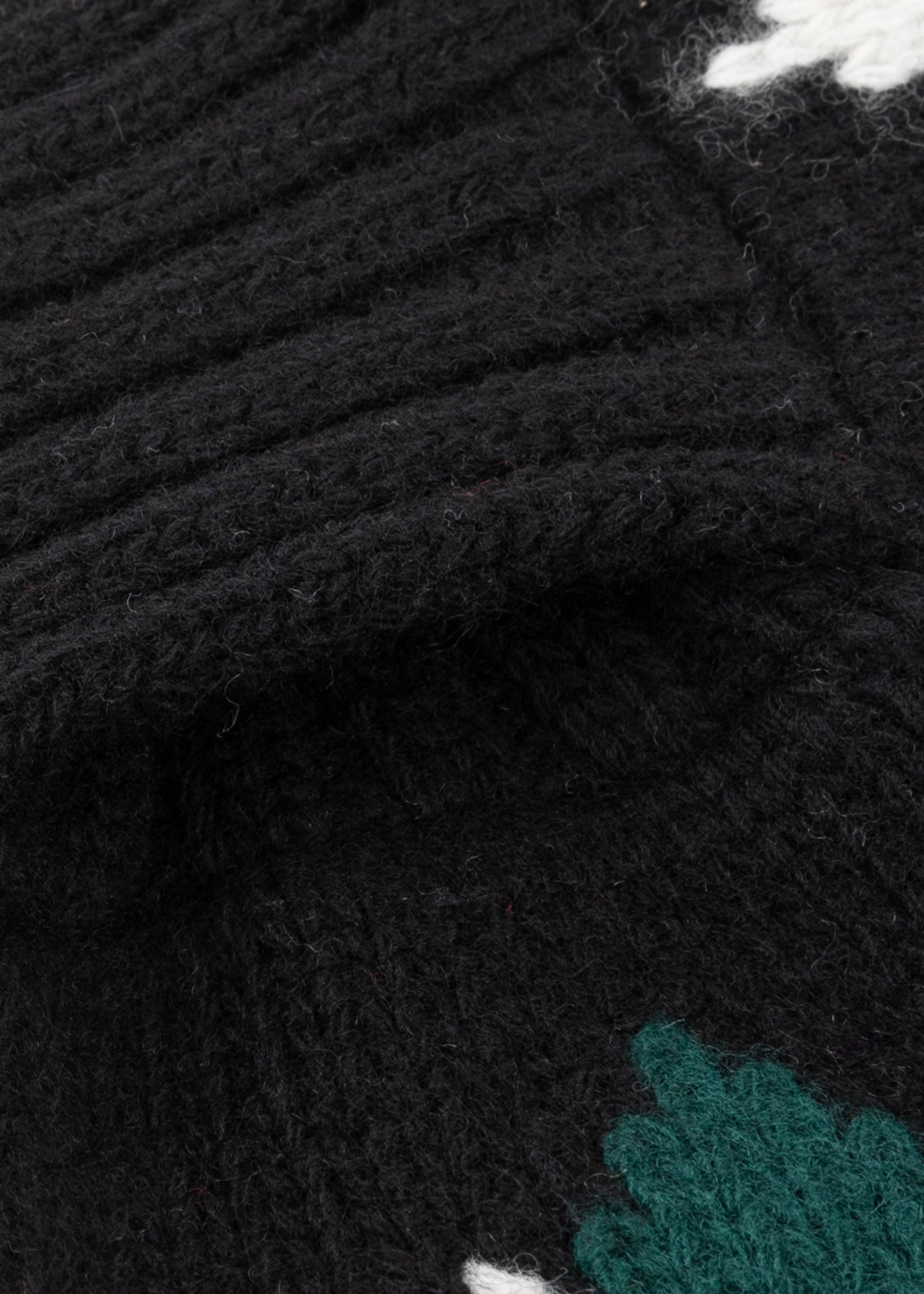 Argyle pattern cardigan 'Atomic' by YMC made of a wool blend, round neck, button placket, long raglan sleeves, ribbed cuffs, straight hem.