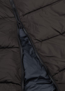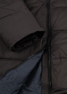 Long coat 'Aranda' by Ecoalf made of recycled polyester, stand-up collar with hood, long sleeves with elastic cuffs, two-way zip closure, inner shoulder straps, zipped hand pockets, one inner zip pocket, straight hem with long side slits and zip, PrimaLoft® insulation, lined finish.
