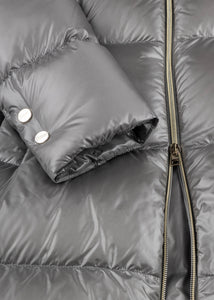 Mid-length coat by Herno, stand-up collar with hood and snap fastener, two-way zip closure, long sleeves, side pockets with snap fastener, straight hem, lined finish.