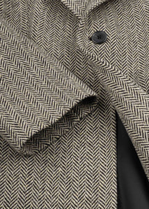 Polo Ralph Lauren knee-length coat in textured wool, peak lapels, padded shoulders, long sleeves, one-button closure, two flap pockets, one inside pocket, straight hem, and lined.