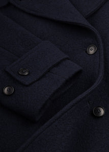 Loose-fitting jacket by Closed made from a soft wool blend, featuring a wide lapel with storm flap, double-breasted closure, long raglan sleeves with flaps, side and flap pockets, one inside pocket, a straight hem with a walking slit, and a lined finish.