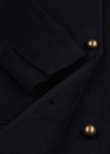 Double-breasted 'Club' jacket by Kiltie made from a soft wool-cashmere blend, featuring a classic collar, statement buttons, long sleeves with side slits, two flap pockets, a straight hem with vents, and a lined finish.