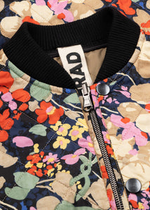 Hip-length reversible 'Anni Vintage Flowers' jacket by Konrad, featuring a ribbed round neck, long sleeves with elastic cuffs, dropped shoulders, a two-way zip closure, snap fasteners, side pockets, a straight hem with drawstring, and a lined finish.
