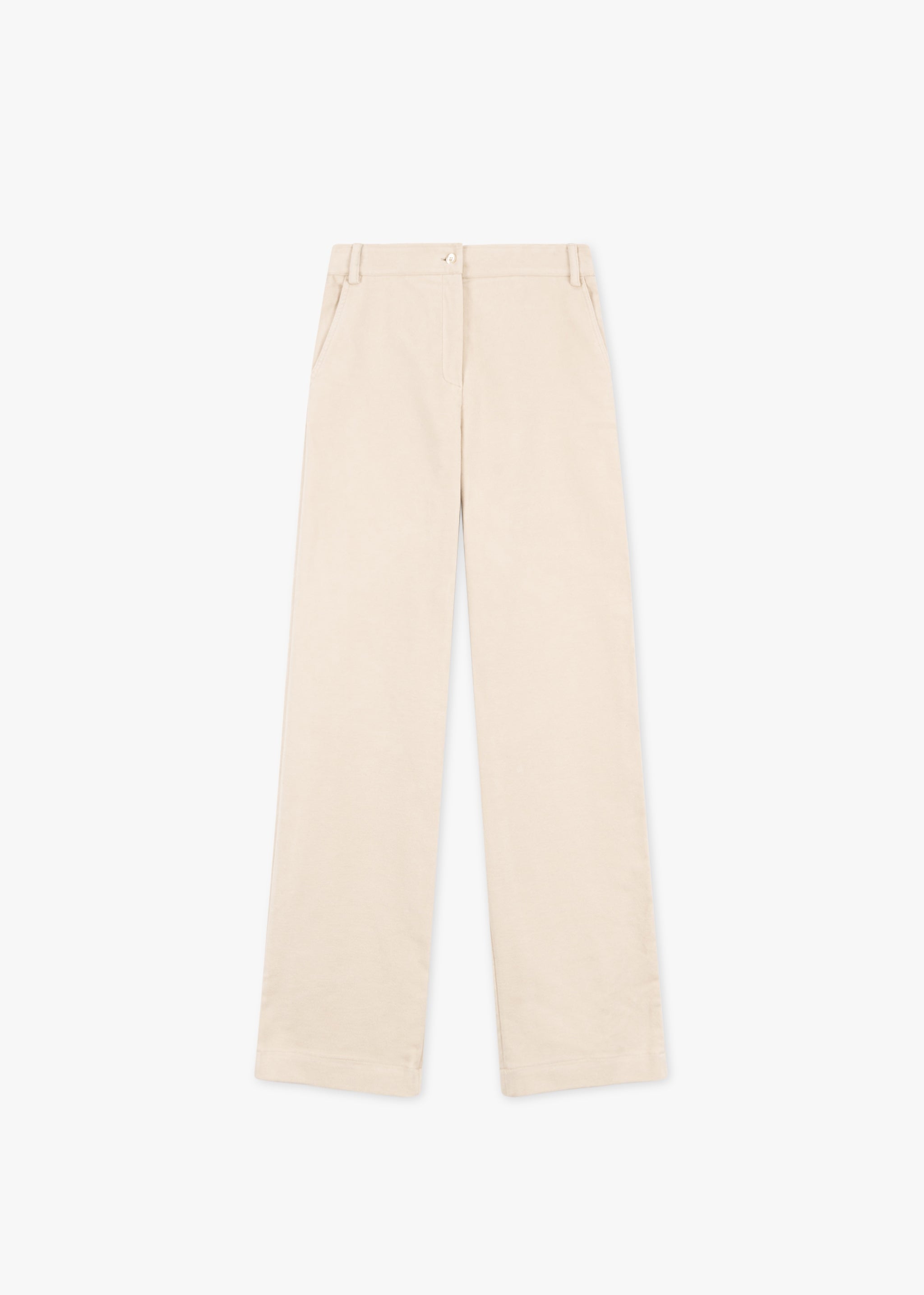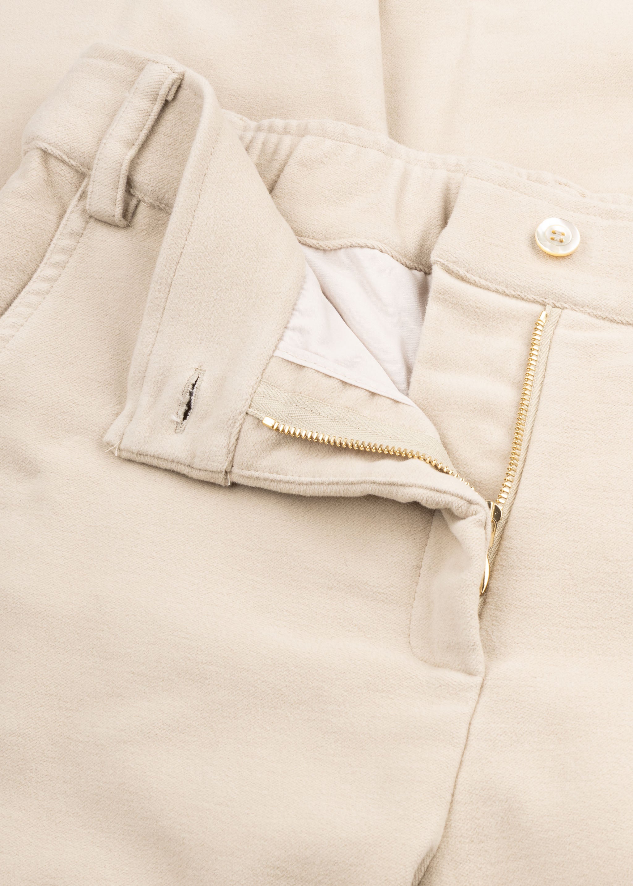 'Safari Jacket' by PiaLea made of moleskin, classic collar, full button placket, back yoke, long sleeves with button cuffs, four patch pockets, straight hem with side slits.