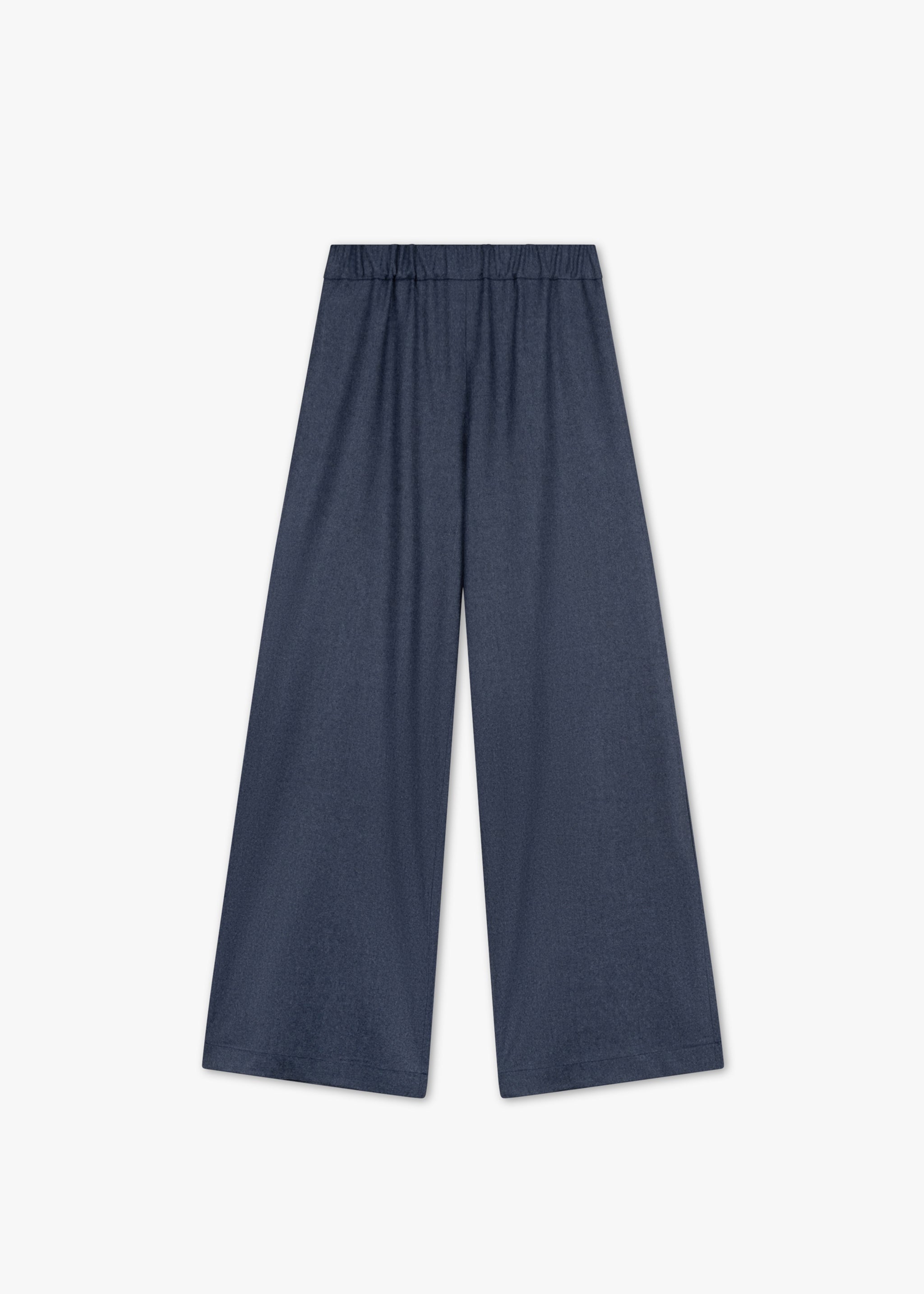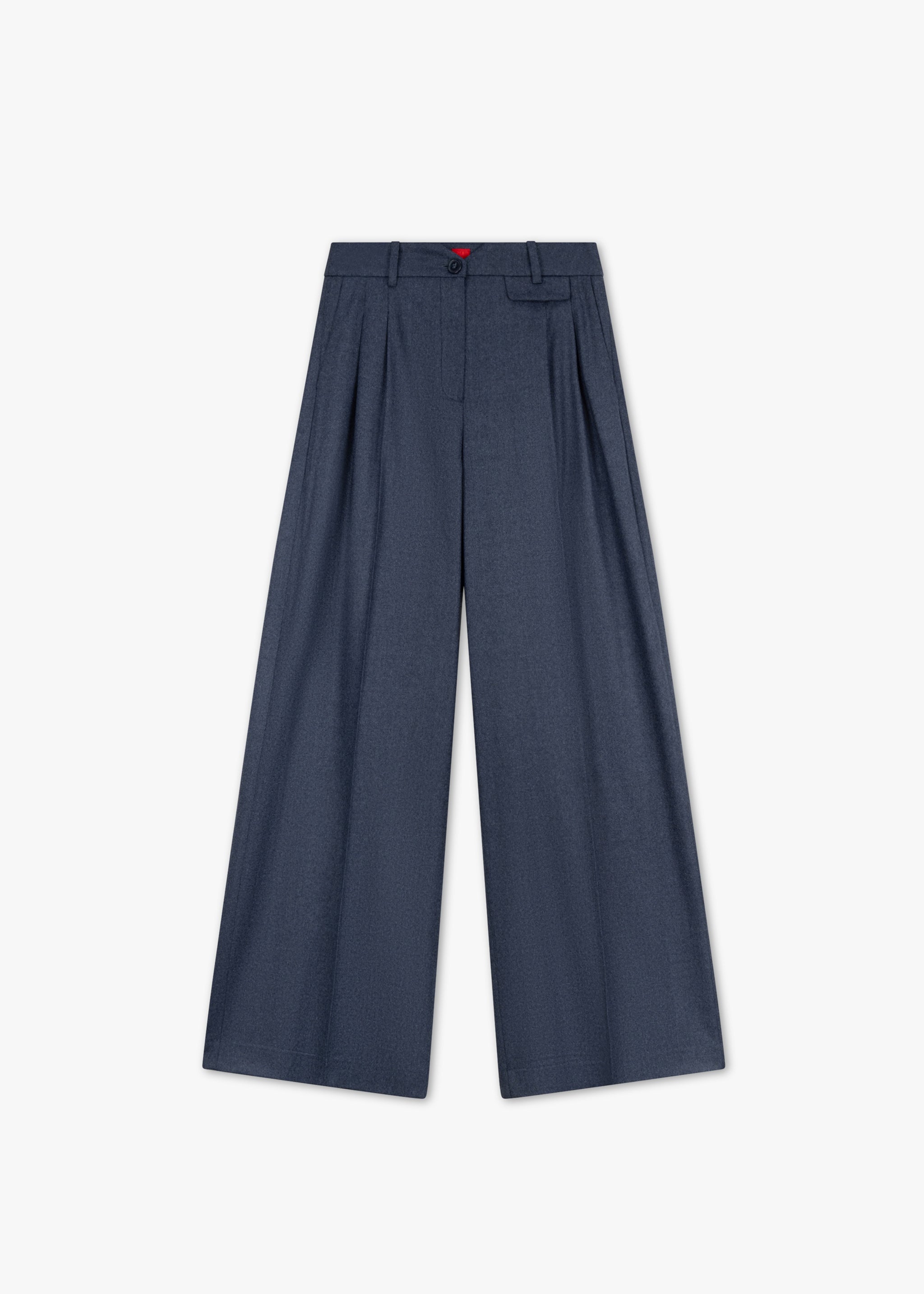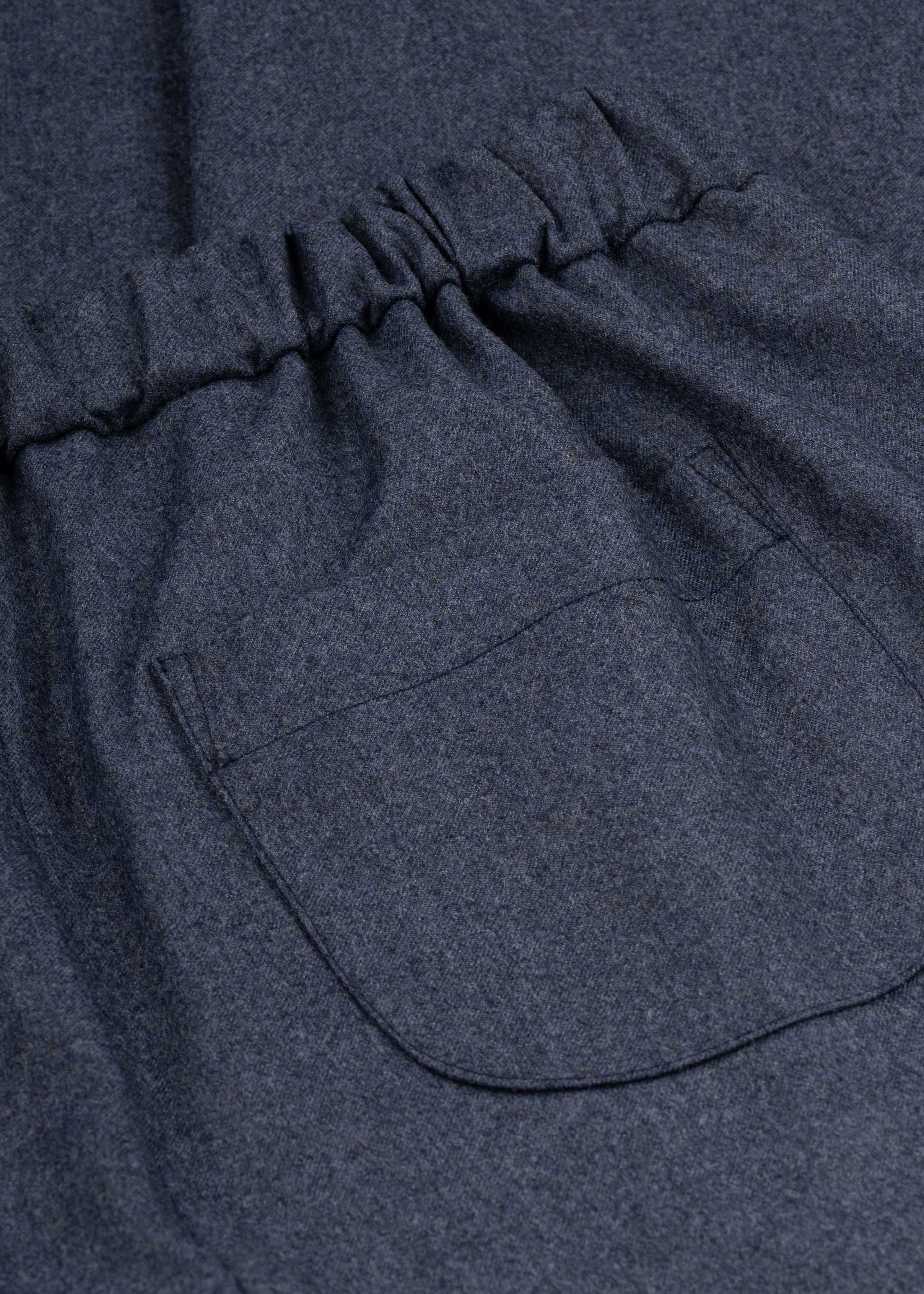Loose-fitting 'Pocket Shirt' by PiaLea made of soft flannel, featuring a pointed collar, full-length button placket, pleated back yoke, long sleeves with button cuffs, two patch pockets, and an extended back hem with side slits.