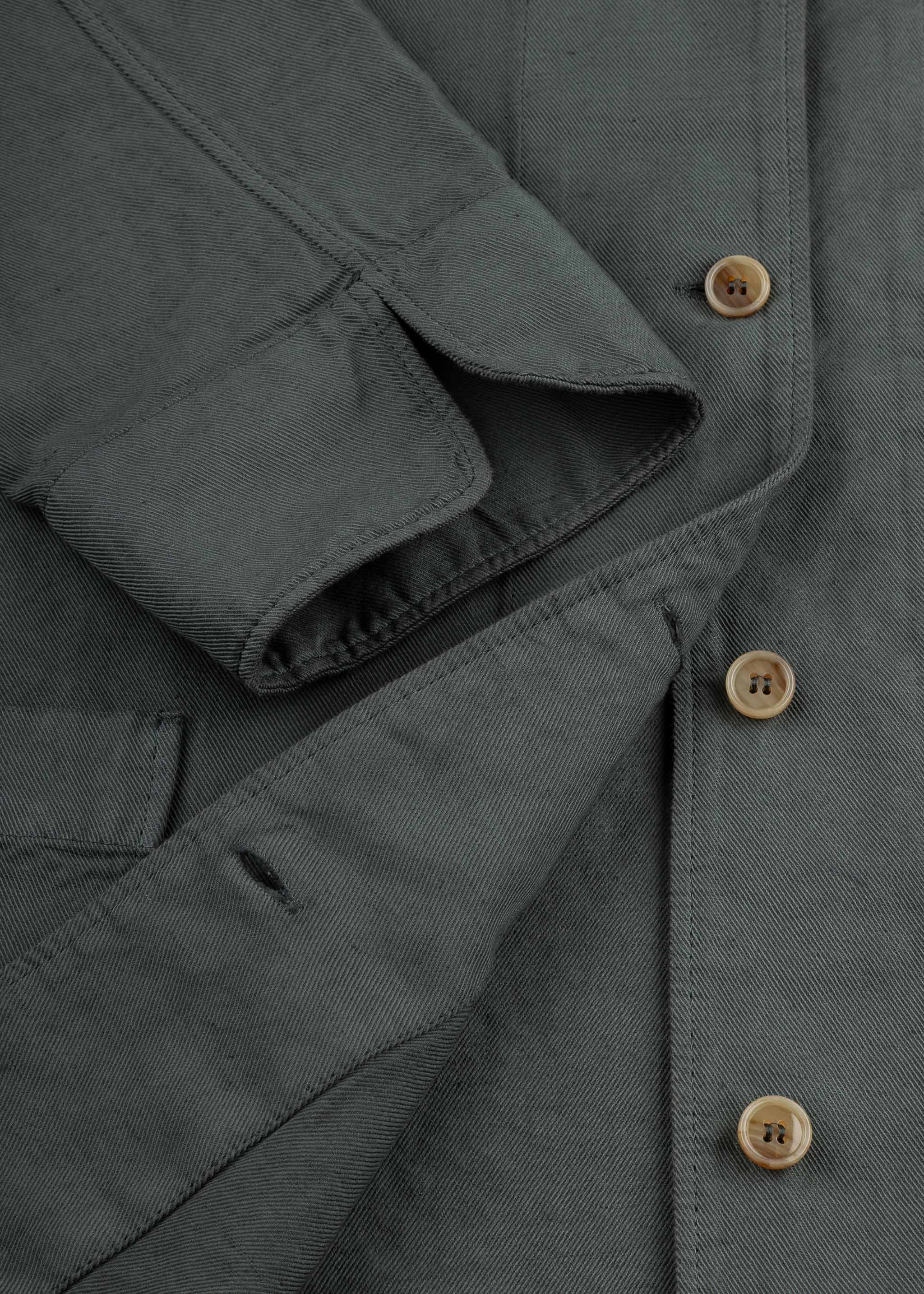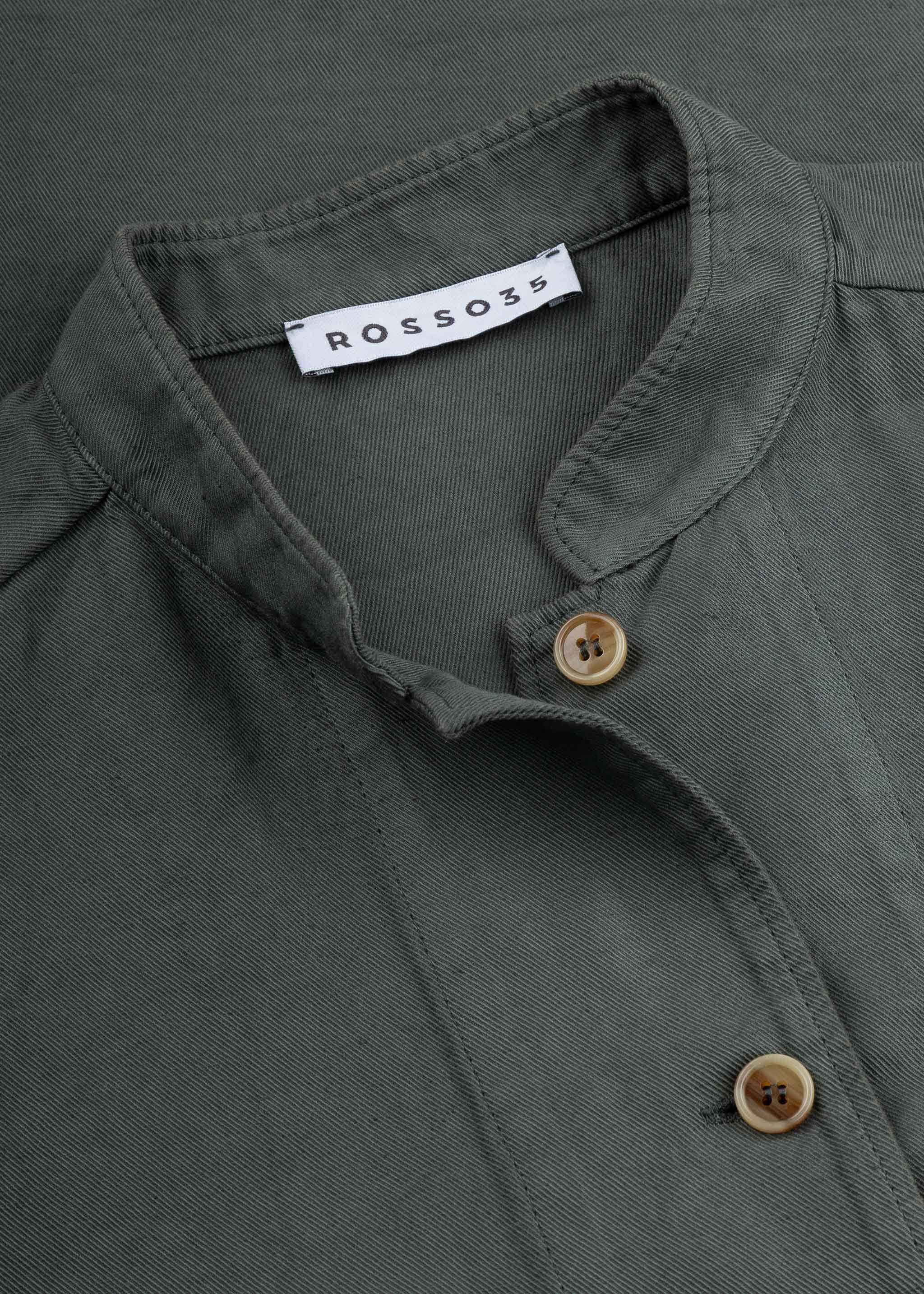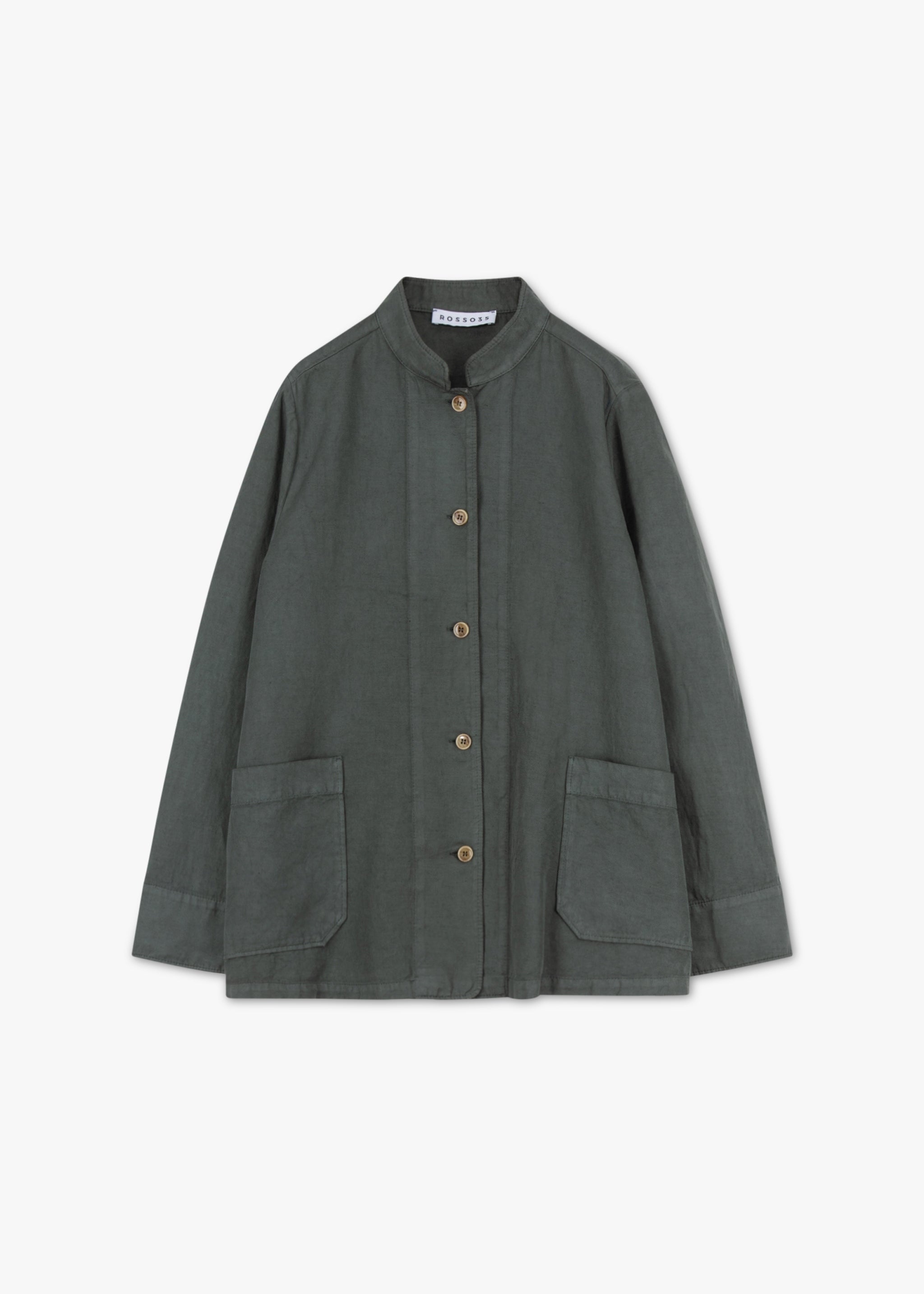 Jacket by Rosso 35 made from a soft cotton-linen blend, stand-up collar, fitted shoulders, long sleeves, button placket, two patch pockets, straight hem, unlined finish.