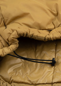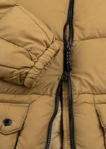 Lightweight down jacket by Taion, stand-up collar, two-way zipper, flap pockets with snap fasteners, elastic cuffs, straight hem.