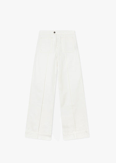'Harry' jeans by Soeur made of sturdy denim, snap button and zipper fastening, patch pockets, creases, wide leg.
