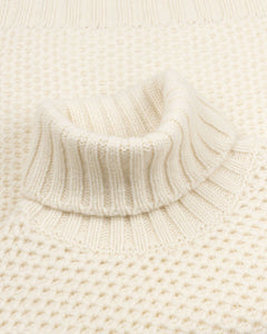 Sweater by Dantendorfer made of the finest Australian lambswool, ribbed cuffs, long sleeves, 3D cable knit, straight hem.
