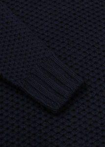 Sweater by Dantendorfer made of the finest Australian lambswool, ribbed cuffs, long sleeves, 3D cable knit, straight hem.