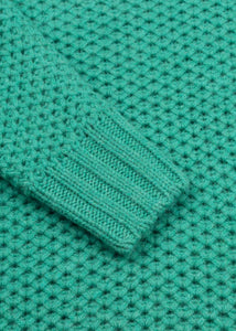 Sweater by Dantendorfer made of the finest Australian lambswool, ribbed cuffs, long sleeves, 3D cable knit, straight hem.