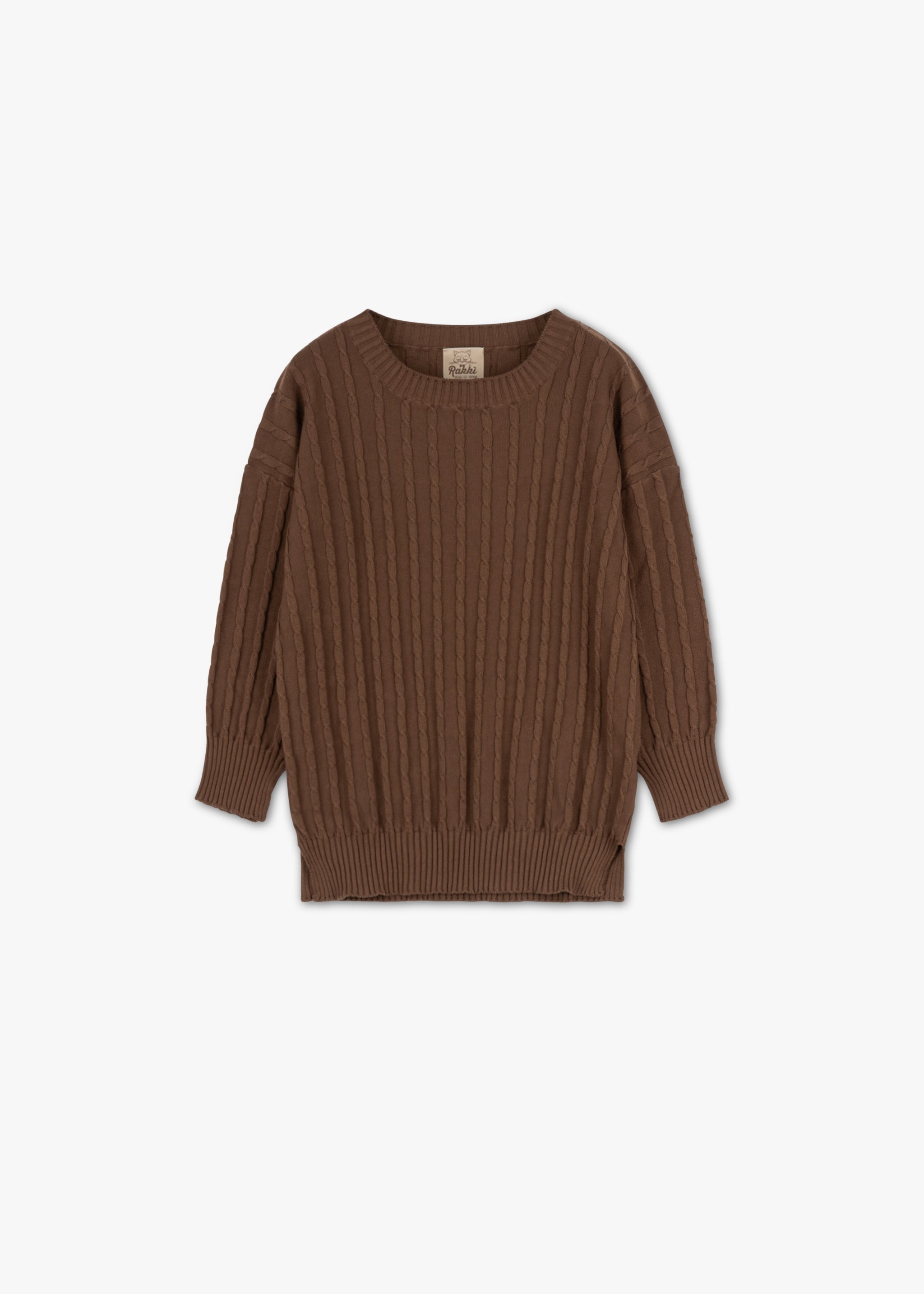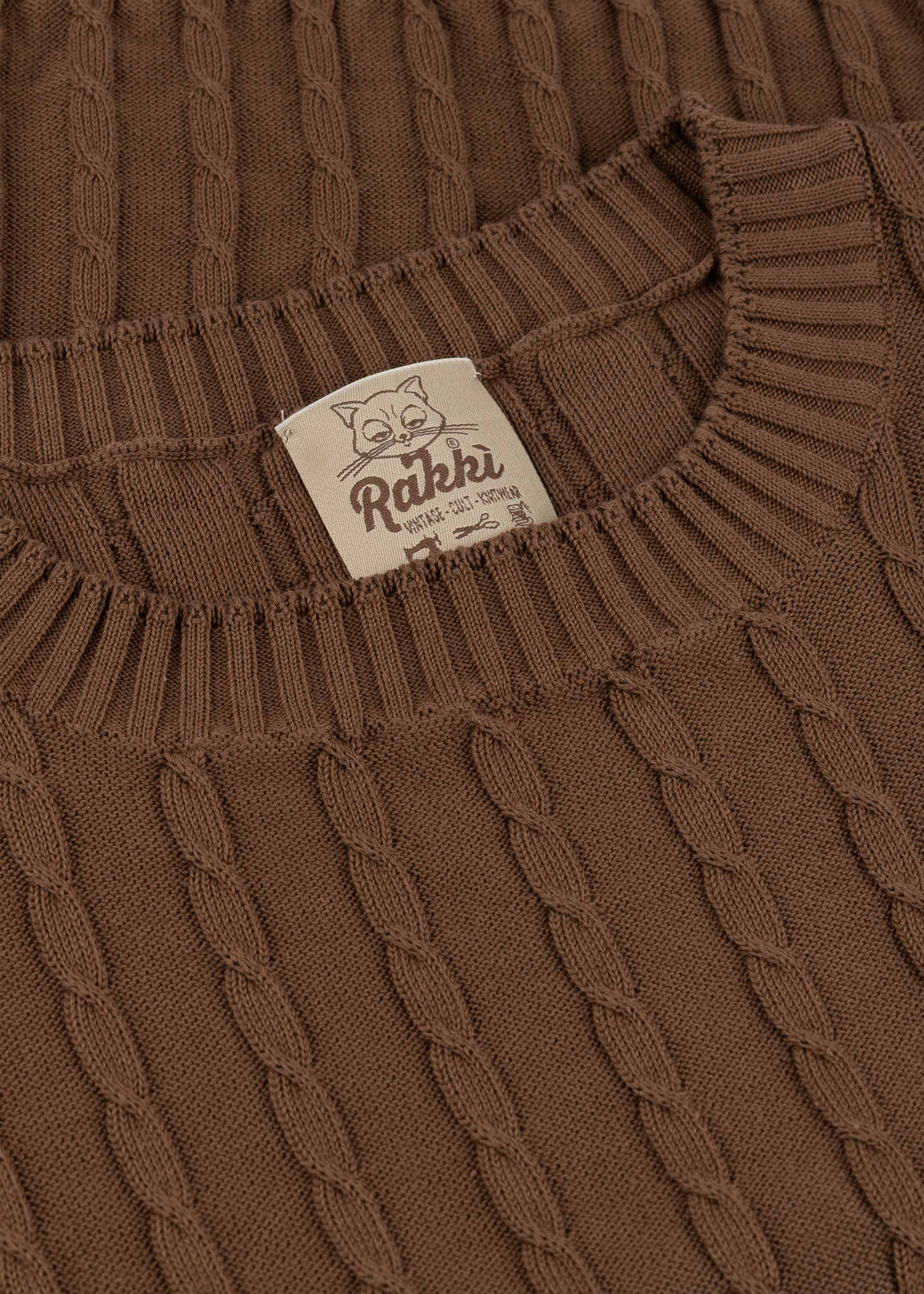 Body-hugging 'Andalusia' knit sweater by Rakki made of cotton, round neck, 3/4 sleeves, ribbed cuffs, straight hem.