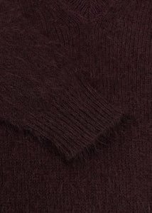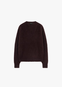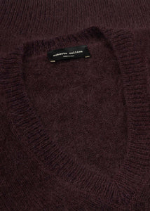 Super soft angora sweater by Roberto Collina, V-neck, ribbed trims, straight hem.