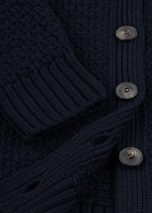 Stand-up collar jacket made of extra-fine merino wool by Aspron Studio with a seed stitch knit, button closure, wide sleeves, and dropped shoulders.
