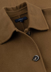 Loose-fitting coat by Soeur made from a premium virgin wool blend, featuring a classic collar, button closure, side pockets, unlined finish, and a straight hem.
