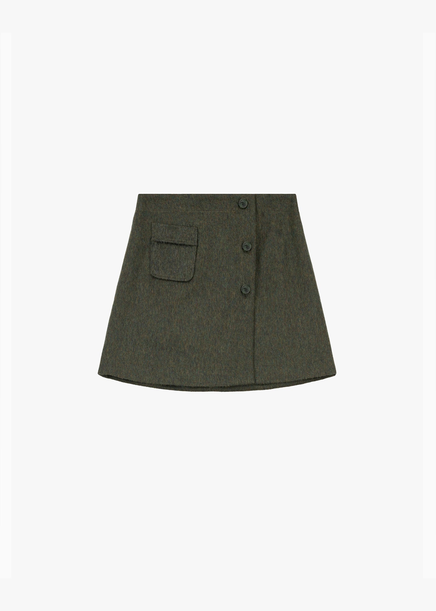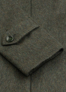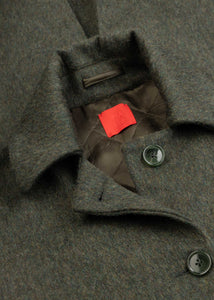 Loden coat by Pialea, closes with hand-sewn buttons, two pockets, back pleat, tabs at the sleeve ends, quilted lining.