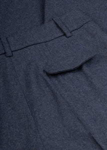 Long 'Carlotta Pants' by PiaLea made of soft flannel, pleats and creases, belt loops, button and zip closure, waist darts at the back waistband, coin pocket, side pockets, and one back pocket.