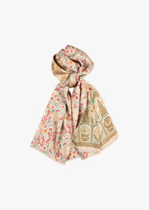 Artistic elongated scarf by Pierre Louis Mascia, both sides with different designs, short fringes and handmade in Italy.