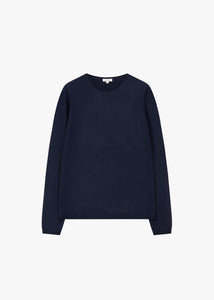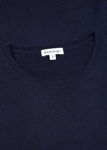 Very soft, dark blue knitted sweater from Dantendorfer made of pure cashmere, round neck, long sleeves, ribbed cuffs.