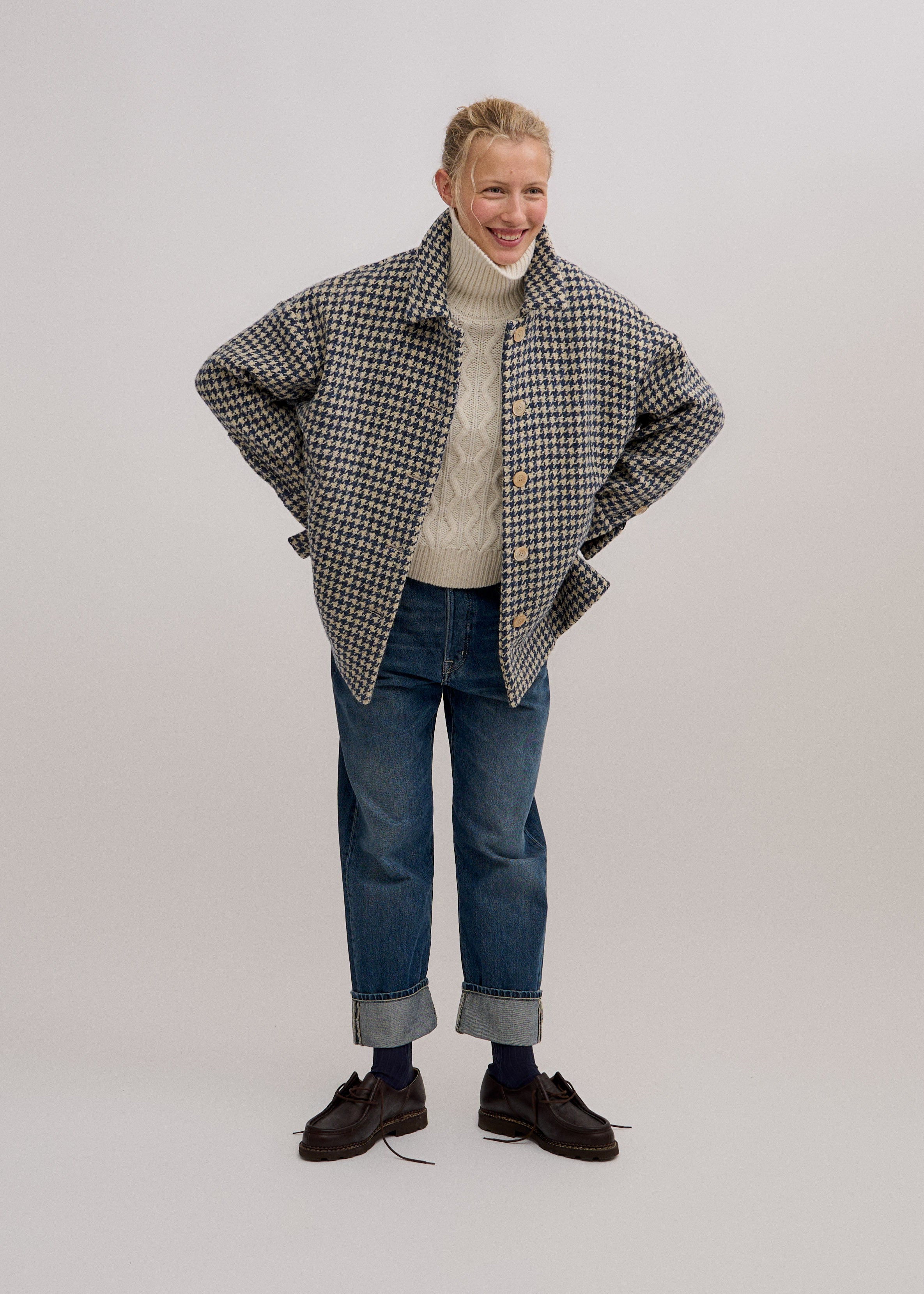 Cable-knit sweater by Mc George made of a virgin wool and cashmere blend, turtleneck, long sleeves, ribbed cuffs, straight hem.