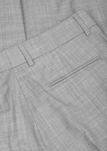 Wide mottled trousers by Quelle Due, belt loops, hook closure with a zipper underneath, french pockets, piped back pockets and a wide cuffed hem.