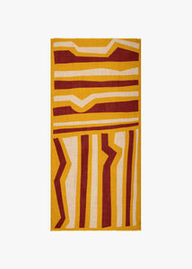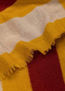 Patterned wool scarf 'Adele' by Lovato & Green, made of pure wool, with short fringes, in the color: yellow/burgundy.