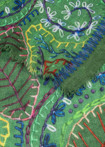 Soft wool scarf by Mel & Davis with fringes and intricate patterns.