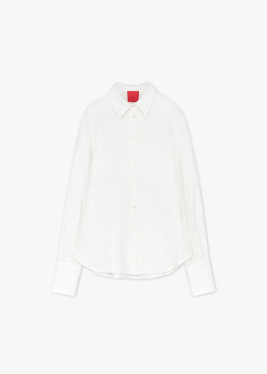 'Woman Shirt' by PiaLea, classic collar, long sleeves with wide buttoned cuffs, slightly rounded hem, structured.