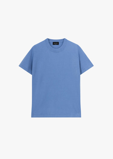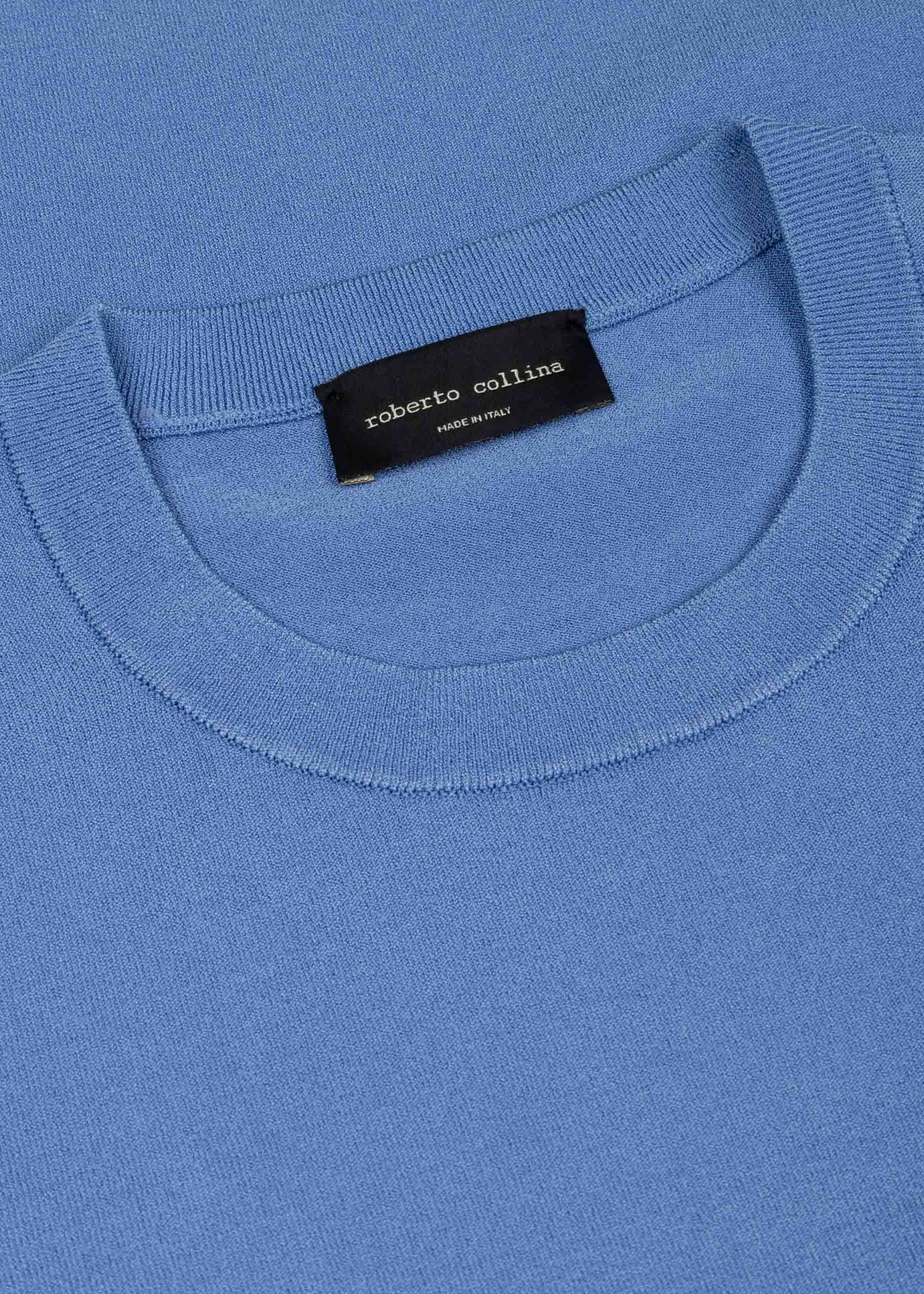 Light blue knitted shirt made from a viscose blend by Roberto Collina, round neck, short sleeves and loose fit.