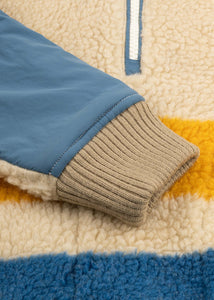 Sweater by Filson made of a virgin wool blend with a fleece texture, featuring a stand-up collar with zip closure, long sleeves, elbow patches, side pockets with zip closure, ribbed cuffs, and a straight hem.
